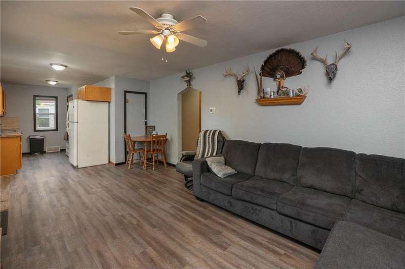 This well-maintained 2-bedroom, 1-bath ranch-style home offers a great mix of modern updates, outdoor space, and room to grow. Situated on a spacious lot, the large yard is perfect for relaxing, gardening, or entertaining and the brand new deck is the perfect place to enjoy it all. The home features durable metal siding and a newer roof (2021), along with updated windows that provide great natural light. Inside, you'll appreciate the updated kitchen with modern cabinets and newer flooring and paint throughout, giving the home a fresh, clean feel. Relocated to its current location in 2001, the house sits on a solid poured concrete foundation built at that time. The basement is clean, dry, and ready to be finished; already framed in spots, with roughed-in plumbing for a second bathroom and an egress window that allows for an additional legal bedroom. Whether you're looking for a comfortable place to call home or a property with investment potential, this one is full of possibilities and even comes with a 1 year warranty for the buyer. Schedule your showing today!