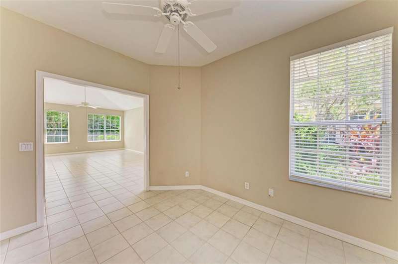 One or more photo(s) has been virtually staged. BIG PRICE REDUCTION FOR TERRIFIC HOME!! FHA AND VA Located in premiere IMG country club community of THE GREENS AT EL CONQUISTADOR. Situated on a choice, deep lot on the cul-du sac with Eastern exposure, this charming home satisfies all the wish list. Pristine interiors are complimented by volume ceilings with recessed lighting, ceiling fans, tile floors, plantation shutters and decorative columns and arches. Updated kitchen with granite counters, tiled backsplash & generous cabinetry with upgraded hardware. A flowing, open plan with split bedroom design....guest bedroom plus a den/study with closet (easily converted to a 3rd BR) on one side with the primary bedroom in the rear enjoying restful views out to the private greenbelt with heavily treed preserve beyond...excellent walk-in closet with lovely bath featuring contemporary double square sinks, separate shower with new shower door and jacuzzi garden tub. This home is value packed with new a/c system (June 2024) PLUS a quality new barrel tile roof (September 2024). For those not wanting the care of a pool....this home has a private rear patio, but is pool free! (with room to add if so desire.) Interior laundry room and two car garage complete the list. The Greens is a very pretty neighborhood of only 43 single family homes with appealing Southern Mediterranean architecture and superior concrete block construction. Surrounded by preserves, lakes and the IMG golf course with sidewalks and garden benches around center lake encouraging nature walks with friends and pets. The ease of maintenance free yard care is included in the low HOA along with cable, Internet and outside water. Moments to golf, close to IMG Sports Academy and an easy zip to our renown Gulf beaches as well as the cultural arts of Sarasota. If you are ready for the Florida lifestyle now - this ideal home is vacant and available for immediate occupancy.