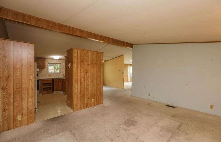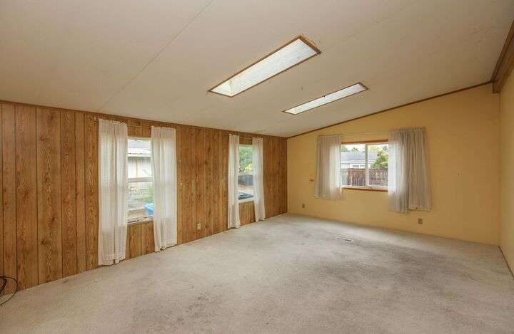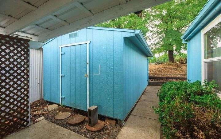 This 3 bedroom 2 bath home in Ashland's Tolman Creek all age park it backs up the YMCA soccer fields. Convenient location close to shopping, Dining , bus stop, YMCA and freeway exit. Open floor plan, w/vaulted ceilings and Skylights. There's a good amount of living area with a family room and a living room. The dining room and laundry room are off the kitchen. Two bedrooms and guest bath on one side, primary on the other side. Primary has a walk-in closet and en-suite with walk-in shower. Covered carport, 2 storage sheds, terraced back yard and covered patio. This home is a diamond in the rough waiting for someone to make it shine.
