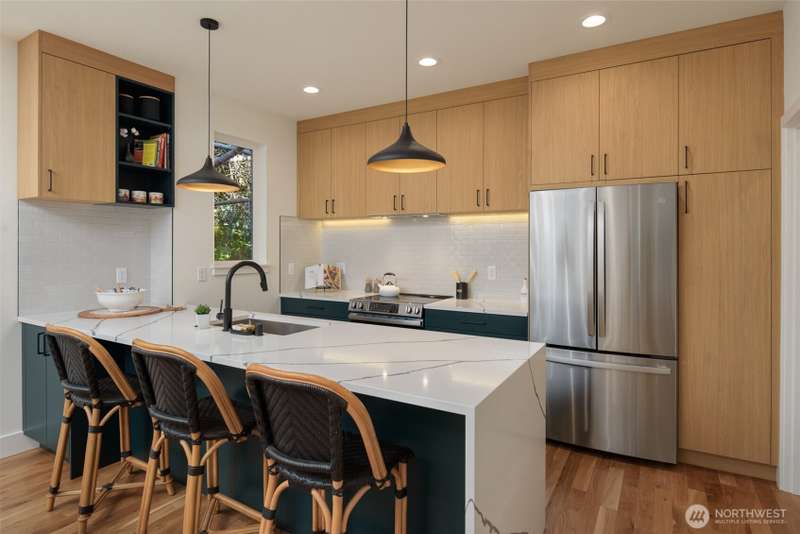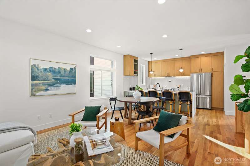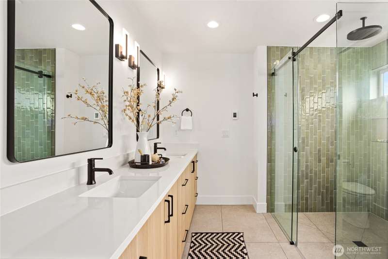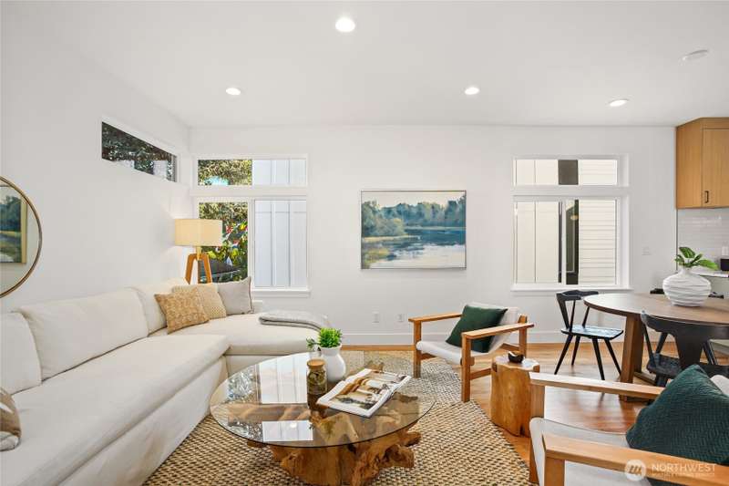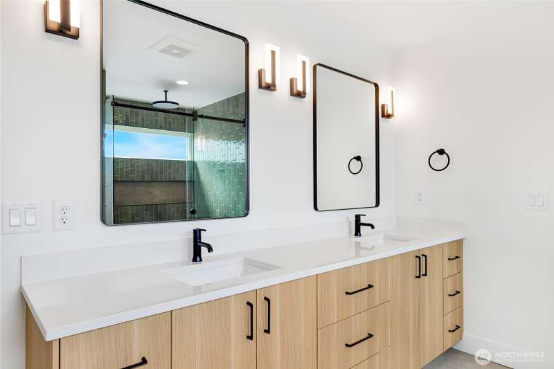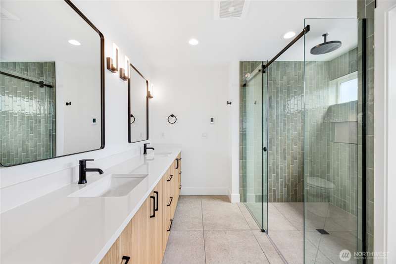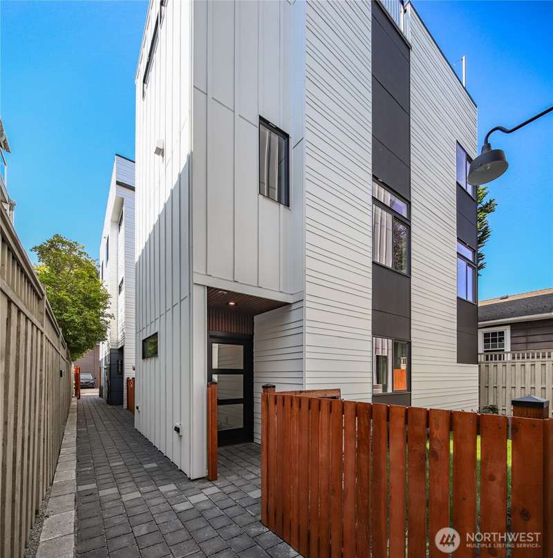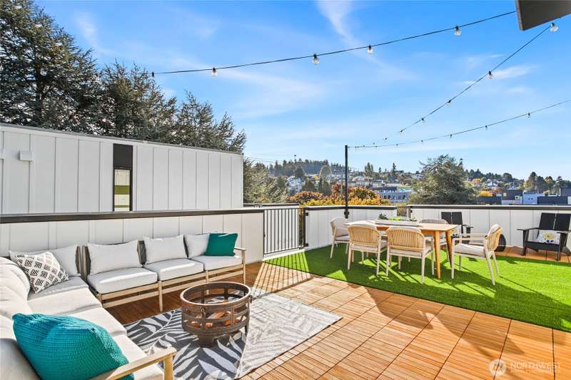 Welcome to Alki one of Seattle's most vibrant neighborhoods. Upper Left Living has built an exceptional new home paying attention to every detail. This home has it all - location, spacious rooms, amazing light, high end designer finishes, office area, fenced yard and private rooftop deck w/ Sound, Mtn & territorial views. The home features a luxury primary suite w/mini split A/C, luxury bathrm w/ designer tile, heated floors, double vanity, curb less shower with heated floors & walk-in closet. Spacious kitchen with all the chef's touches, under counter lighting, stainless appliances, walk-in pantry and prep island/eating bar. Main floor dining, powder rm, White Oak hard wds throughout & designated parking, E-car ready. No HOA dues.