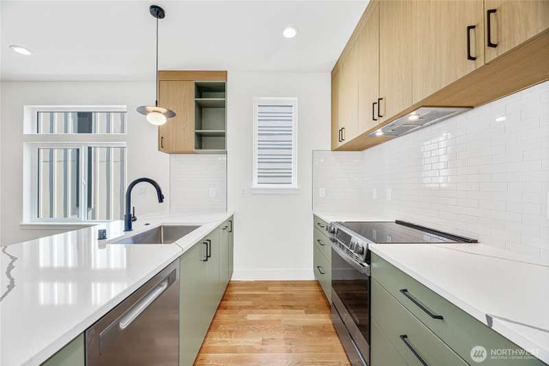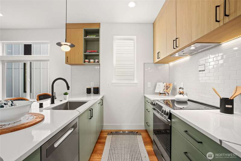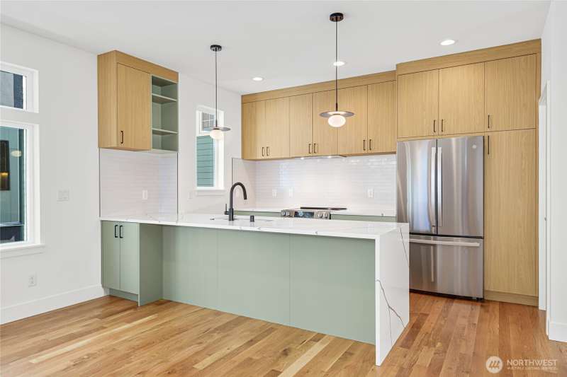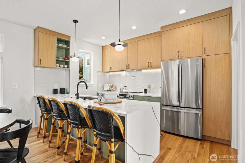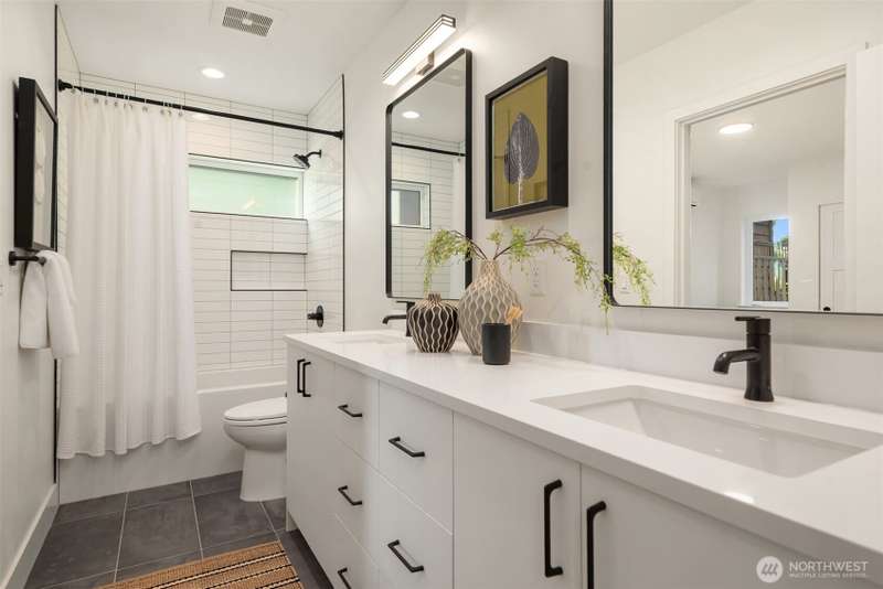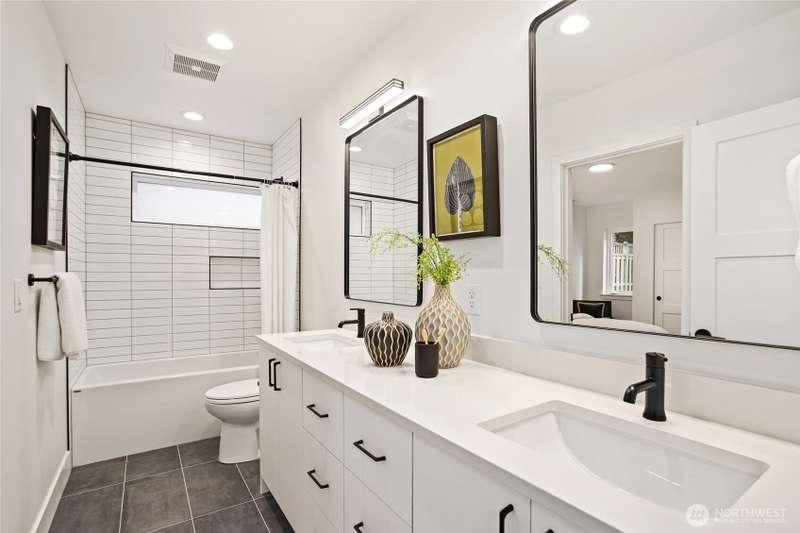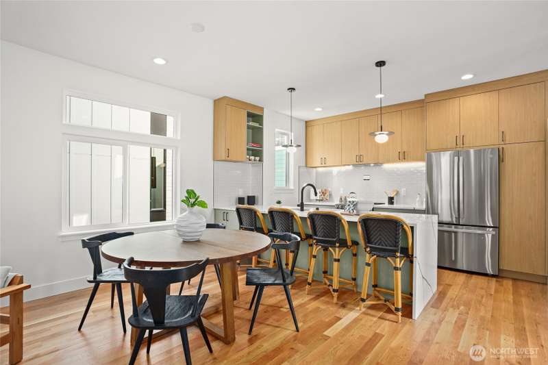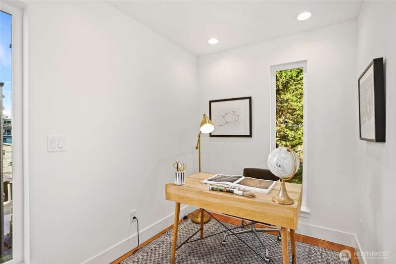 Welcome to Alki one of Seattle's most vibrant neighborhoods. Upper Left Living has built an exceptional new home paying attention to every detail. This home has it all - location, spacious rooms, amazing light, high end designer finishes, office area, fenced yard and private rooftop deck w/ Sound, Mtn & territorial views. The home features a luxury primary suite w/mini split A/C, luxury bathrm w/ designer tile, heated floors, double vanity, curb less shower with heated floors & walk-in closet. Spacious kitchen with all the chef's touches, under counter lighting, stainless appliances, walk-in pantry and prep island/eating bar. Main floor dining, powder rm, White Oak hard wds throughout & designated parking, E-car ready. No HOA dues.