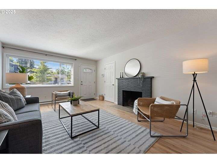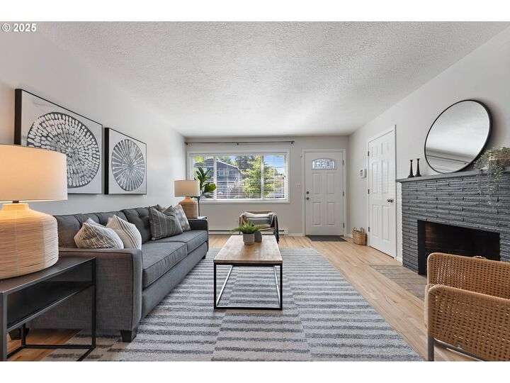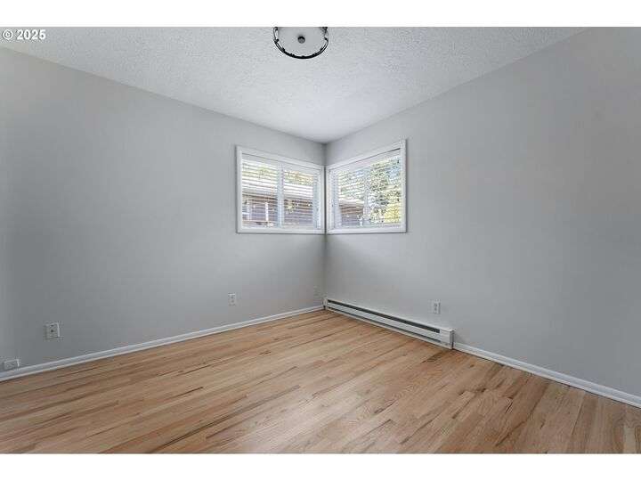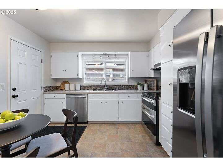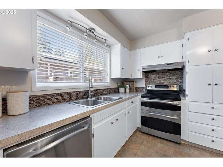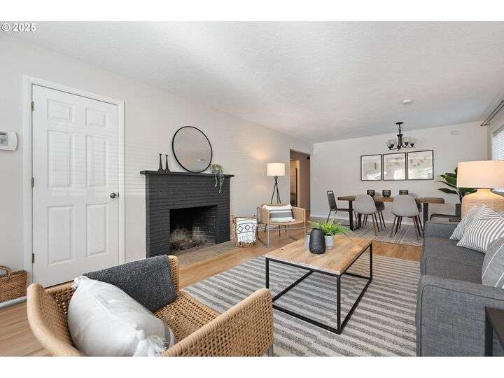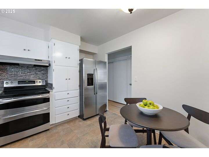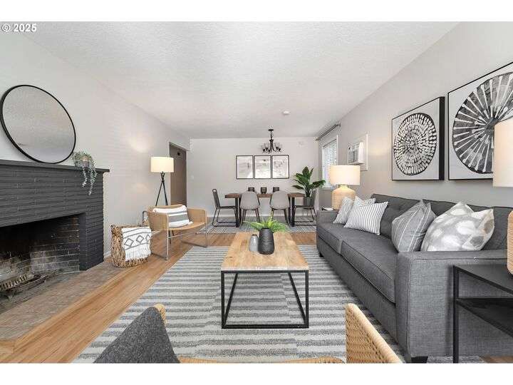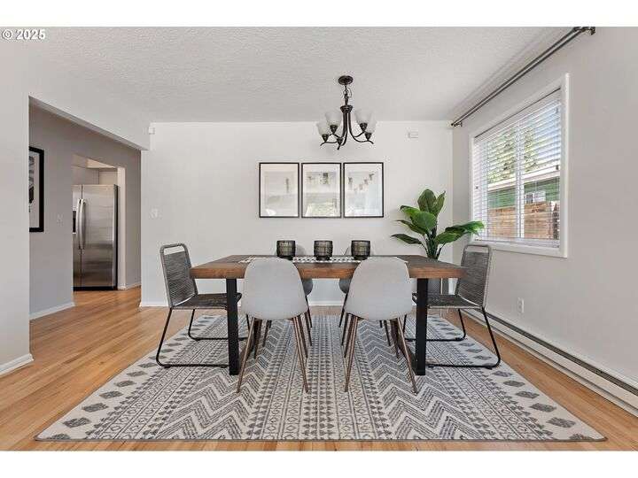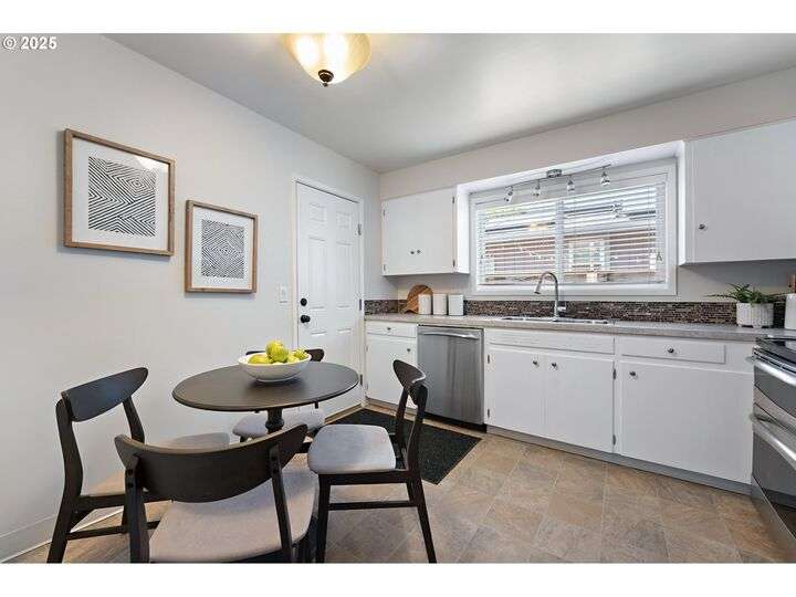 Cute and well maintained mid-century ranch in a quiet and convenient location close to both the Woodstock neighborhood and the Mt Scott Park & Community Center. This home is truly move-in ready with refinished solid oak hardwood floors, fresh interior paint, recent new roof (2022), updated electrical panel, updated siding and windows, new wall A/C, blinds on all windows, and all appliances included. The accommodating and functional layout includes a wood burning fireplace in living room, plenty of space for a large dining table plus an additional dining nook in the kitchen, 3 bedrooms, 1.5 baths, fenced yard, and an attached garage with access directly to the kitchen. Nice, walkable neighborhood, just one block north of Woodstock. Walk score of 69 and bike score of 96! [Home Energy Score = 4. HES Report at https://rpt.greenbuildingregistry.com/hes/OR10241742]