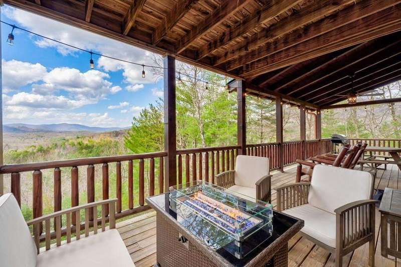 Nestled in the heart of Fannin County's beautiful mountains, this charming 3 bedroom, 3 bathroom cabin offers a serene retreat with breathtaking views. The open-concept living area features vaulted ceilings and many windows, flooding the space with natural light and showcasing the stunning mountain landscape. The kitchen boasts plenty of cabinet/counter space providing both functionality and style. Each bedroom is generously sized, with the master suite offering a private balcony to enjoy the tranquil surroundings and view. The home is complimented by beautiful rustic furnishings. Located just minutes from local hiking trails, charming shops, and dining options, this cabin combines rustic charm with convenience. The home has been a very successful rental!!