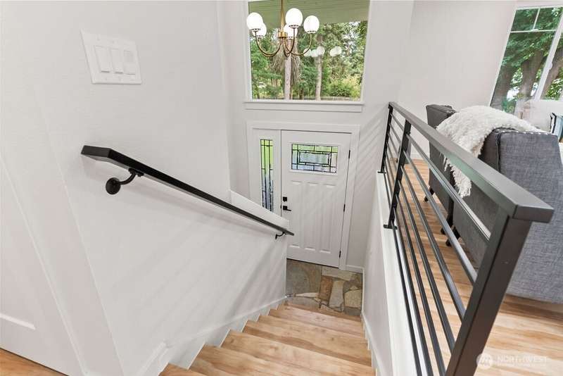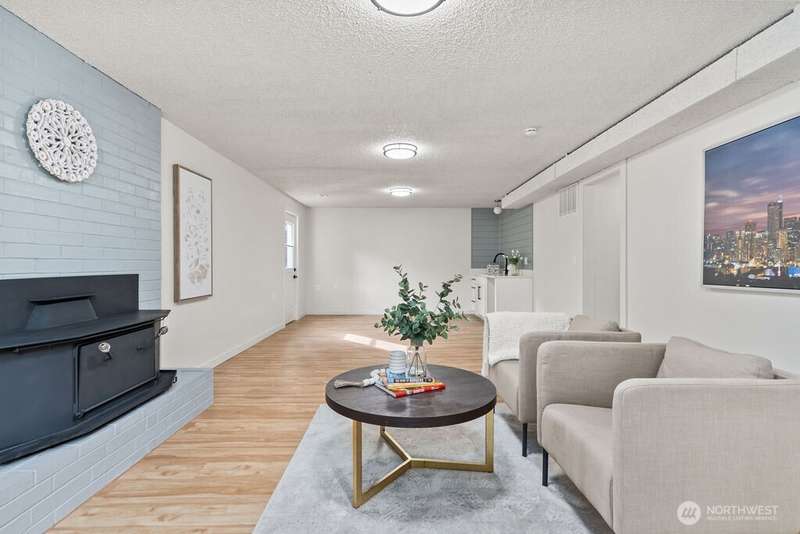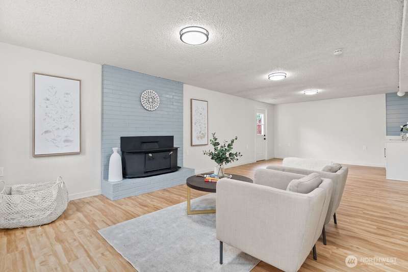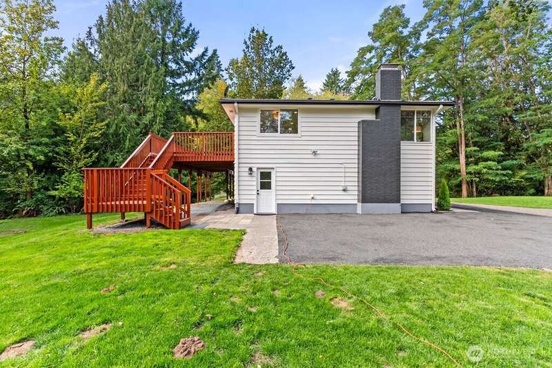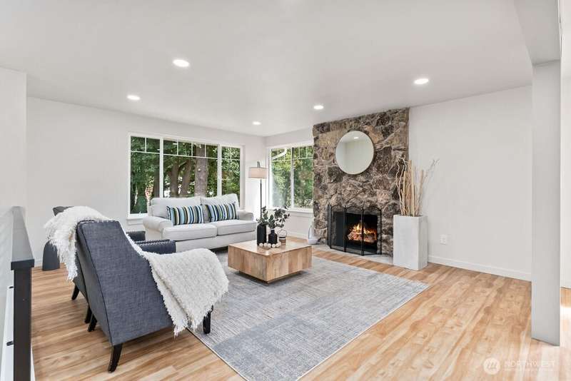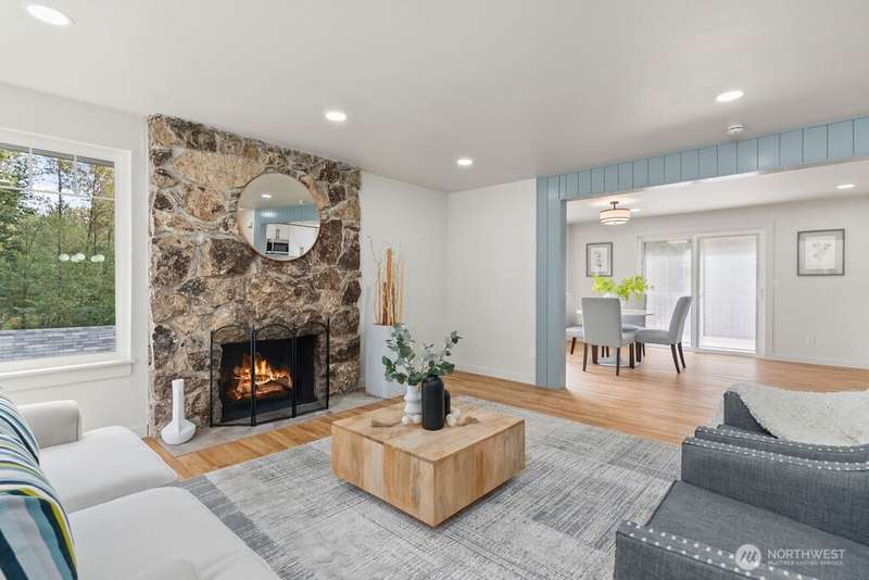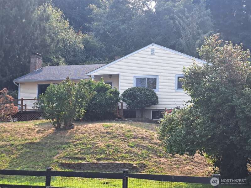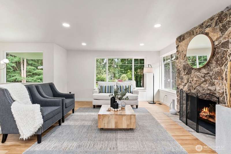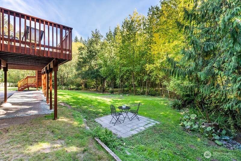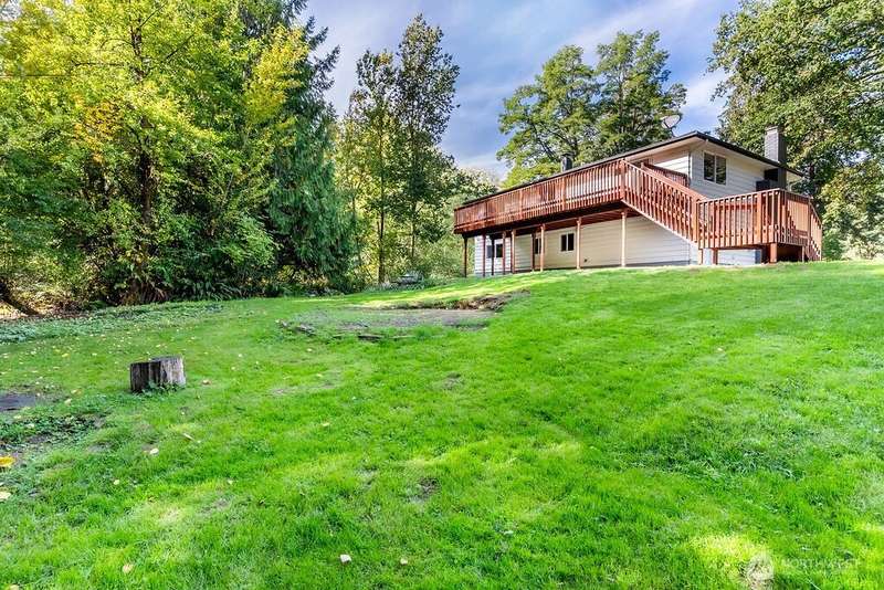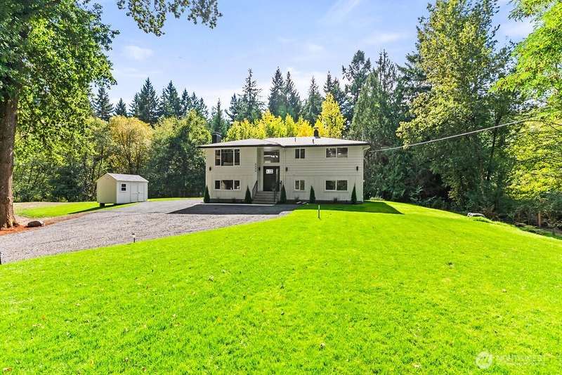Tucked away behind a gated entrance, this beautifully updated 2,358 sq ft home offers privacy, serenity, and modern comfort. The property spans 6.5 acres and features a great-sized pond, outbuildings, and ample parking. The main level boasts a stunning kitchen with new cabinets, and a stylish backsplash, opening to a cozy living room with a stone-surround wood-burning fireplace, deck to enjoy peaceful views. The lower level, with its own separate entrance, provides a flexible living space complete with a kitchenette, spacious room with fireplace, full bath, and oversized utility room/perfect for multi-generational living. All this, just 7 minutes to the ferry and 3 minutes to Banner Forest Park with miles of biking, and walking trails.