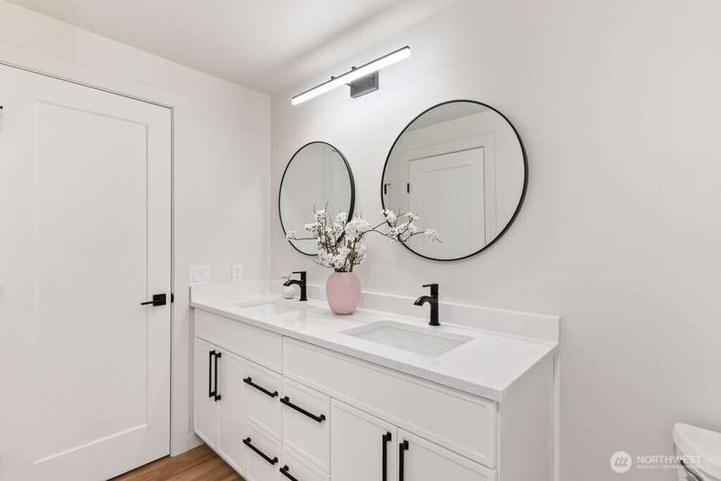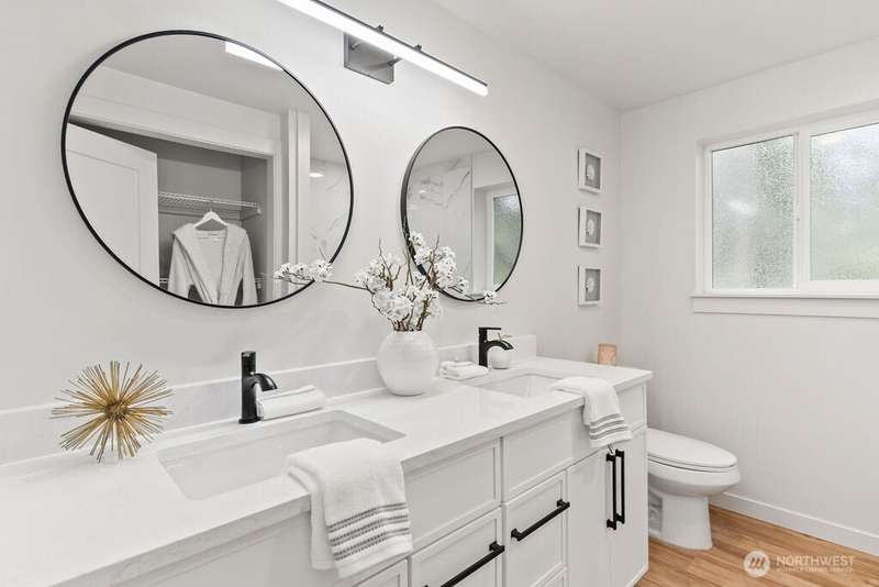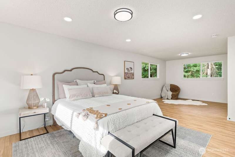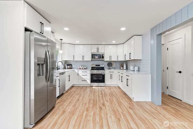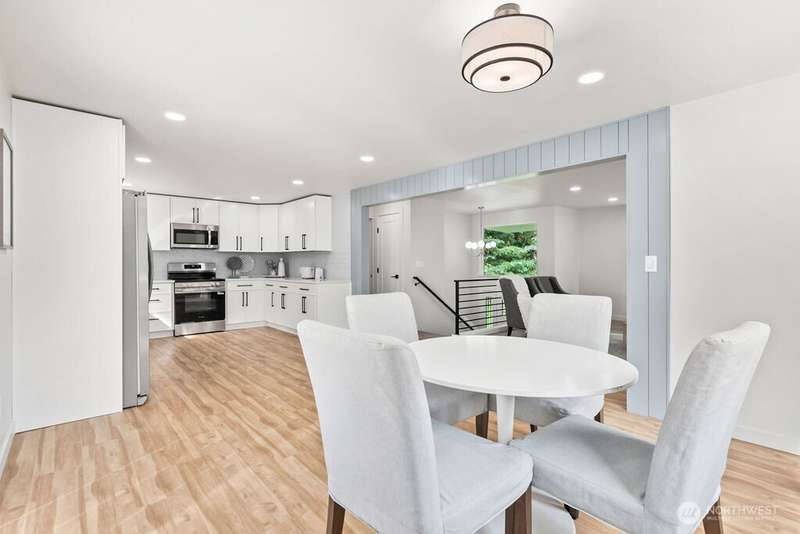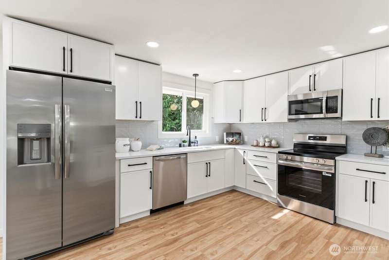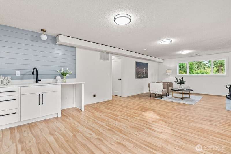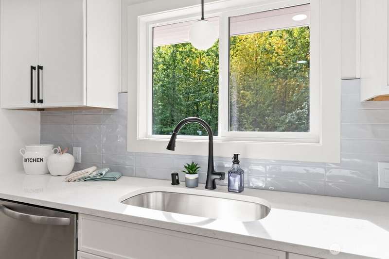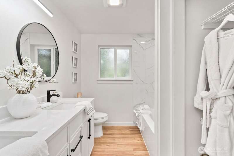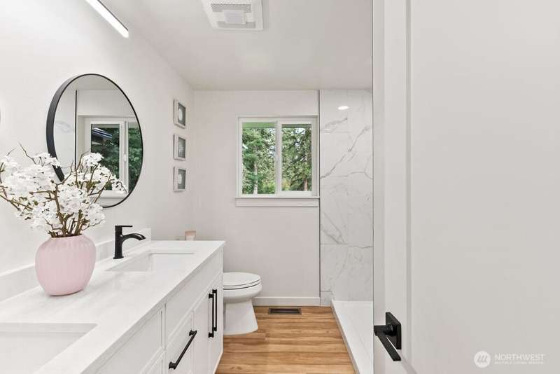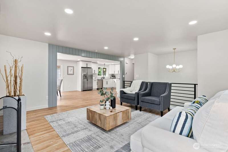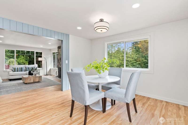 Tucked away behind a gated entrance, this beautifully updated 2,358 sq ft home offers privacy, serenity, and modern comfort. The property spans 6.5 acres and features a great-sized pond, outbuildings, and ample parking. The main level boasts a stunning kitchen with new cabinets, and a stylish backsplash, opening to a cozy living room with a stone-surround wood-burning fireplace, deck to enjoy peaceful views. The lower level, with its own separate entrance, provides a flexible living space complete with a kitchenette, spacious room with fireplace, full bath, and oversized utility room/perfect for multi-generational living. All this, just 7 minutes to the ferry and 3 minutes to Banner Forest Park with miles of biking, and walking trails.