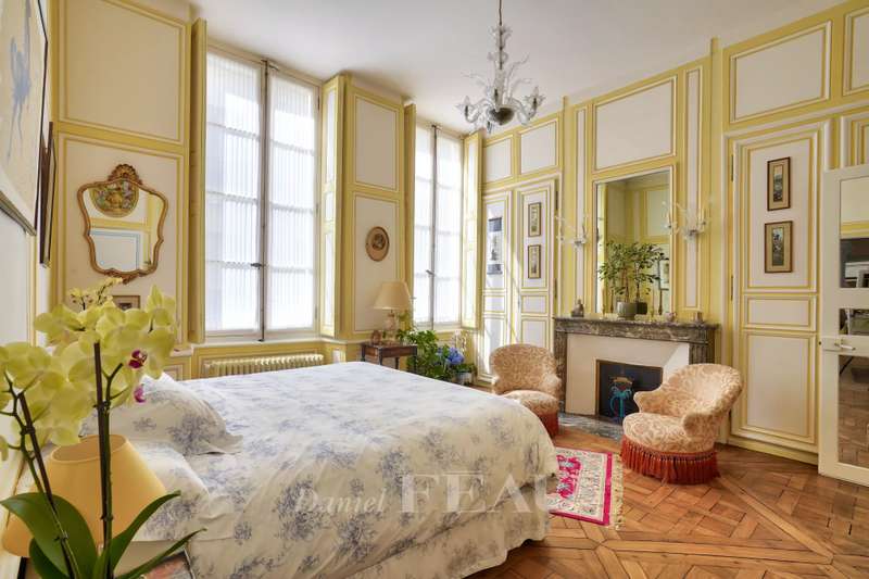 This elegant 165 sqm apartment is on the « piano nobile » of a fine early 18th century building located in the immediate vicinity of the world-famous chateau. It includes a suite of spacious living/reception rooms, two fitted and equipped kitchens, four bedrooms, four bathrooms and four wc. Superb period features include 3.60 metre-high ceilings, panelling, mouldings, fireplaces, Versailles-style parquet flooring and interior shutters. The building was refaced in 2017, the roofing is recent and the common areas are in mint condition. Benefiting from two separate entries, the apartment could be divided to create two independent 70 and 95 sqm apartments. With a vaulted cellar. the presentation of an ID card is mandatory to visit