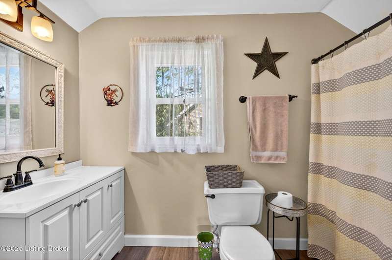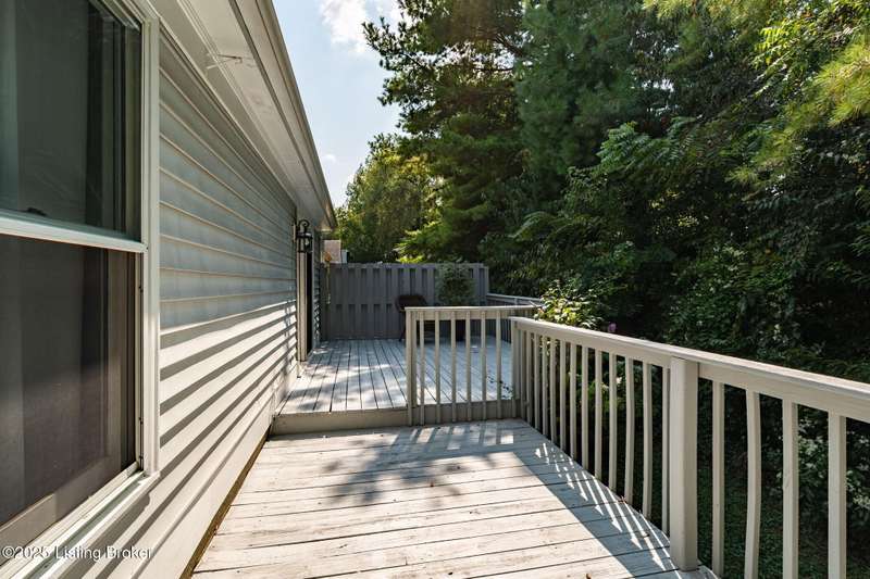 Welcome to 10521 Bay Pointe Ct! Nestled in a quiet cul-de-sac off Westport Road and Hwy 22, this charming 2-bedroom, 2-bath home offers both comfort and convenience in the heart of Louisville's East End. Close to shopping, dining, schools, and expressways, the location is unbeatable. Step inside to find an inviting open floorplan with vaulted ceilings that make the main level feel spacious and airy. The living room features a cozy fireplace, abundant natural light, and flows seamlessly into the dining area and kitchen. The kitchen is complete with plenty of cabinet space, a passthrough window to the dining area, and direct access to your private wood deck, perfect for morning coffee or evening gatherings. The first-floor primary bedroom includes two closets and a jack-and-jill style bath with easy access to the main living areas. A convenient laundry closet rounds out the main level. Upstairs, the second bedroom/loft suite offers privacy and flexibility with its own full bath, perfect for guests, a home office, or a second primary suite. Outside, enjoy a beautifully shaded front yard and a peaceful backyard that backs to greenery, offering both privacy and tranquility. Additional features include a one-car garage, updated flooring in much of the home, and great storage options. This home combines low-maintenance living with thoughtful design, making it ideal for first-time buyers, downsizers, or anyone looking for a comfortable retreat in a prime location.