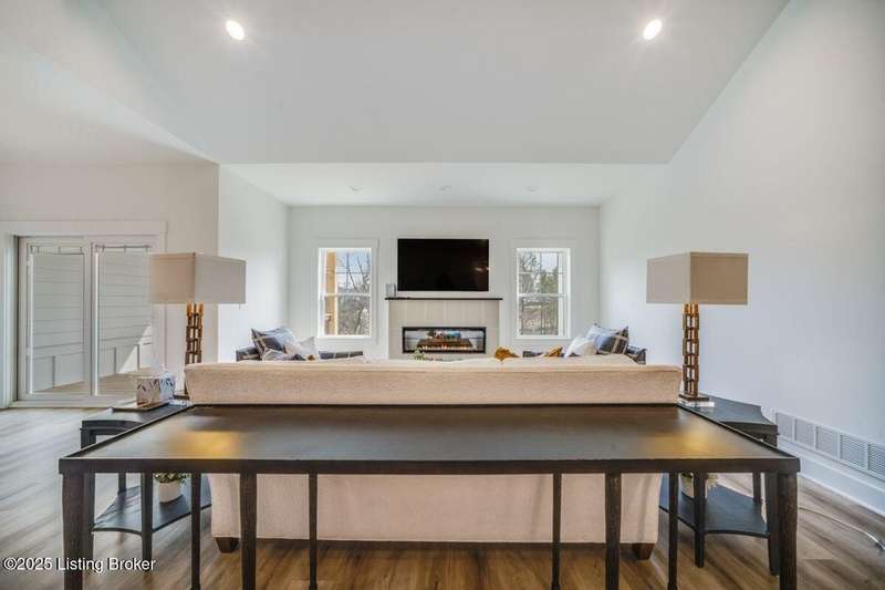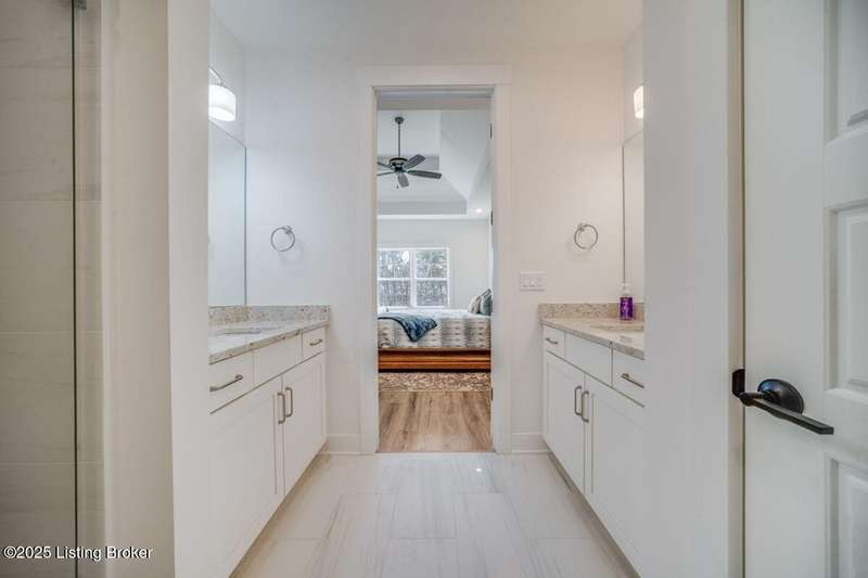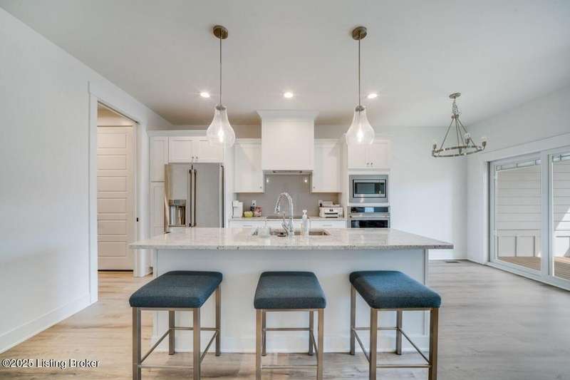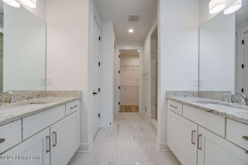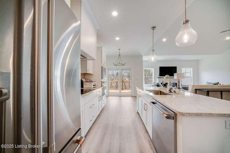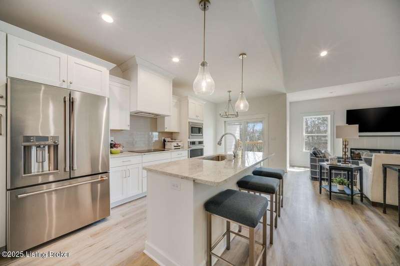 Welcome to a new construction patio home with a walk-out basement located in the Reserve at English Station. This stunning residence offers a perfect blend of design, functional spaces, & luxurious finishes. With 3 outdoor living spaces, open floor plan, white custom kitchen w quartz & GE cafe appliances, LVP flooring, huge primary suite& en suite primary bath w/ large shower/bench, & double vanities.. it's sure to impress! The main living area seamlessly connects the living room w/ fireplace, dining area, kitchen, laundry & covered private porch balcony. ALL 8 ft doors! The lower level has 2 additional bedrooms, a full bathroom, & a second living area with its own private patio! Clubhouse, pool, & workout room with maintenance free living for $250/mo! Model home open Wed -Sun 12 to 4p