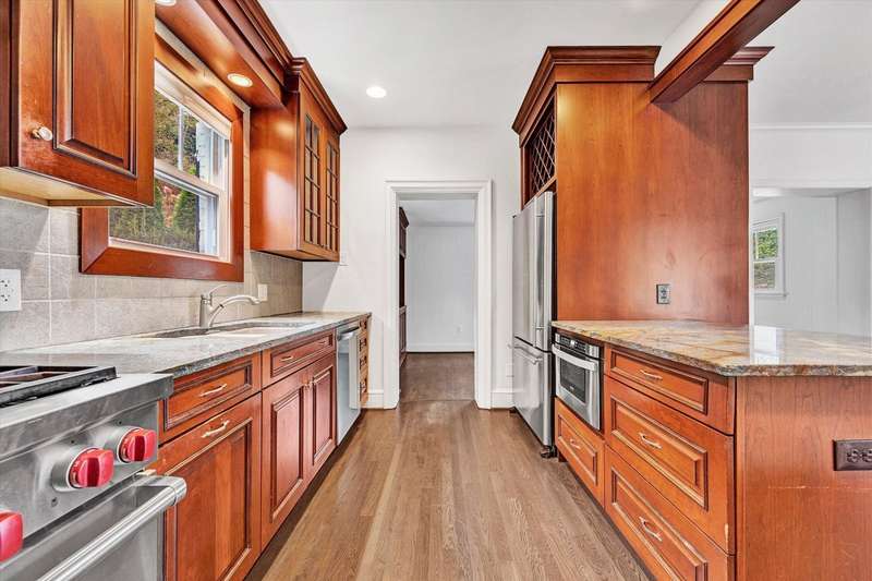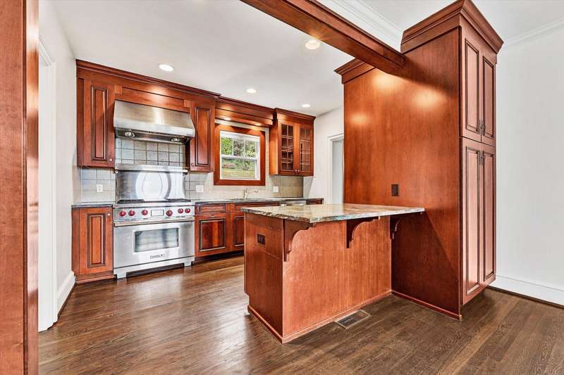 Nestled in the highly desirable South Roanoke neighborhood, this home offers incredible views of the Roanoke valley and Mill Mountain, all within walking distance to Carilion Hospital, the Greenway, hiking and biking trails, and the charming South Roanoke commercial district filled with shops, restaurants, and stores. Inside, the main level welcomes you with a spacious living room that opens to a back porch showcasing those stunning views, along with a formal dining room, cozy den, half bath, and a gourmet kitchen featuring Wolf and Sub-Zero stainless steel appliances, granite countertops, and premium cabinetry. Upstairs features three bedrooms and two full baths, including a luxurious primary suite with a walk-in tile shower and walk-in closet. The lower level