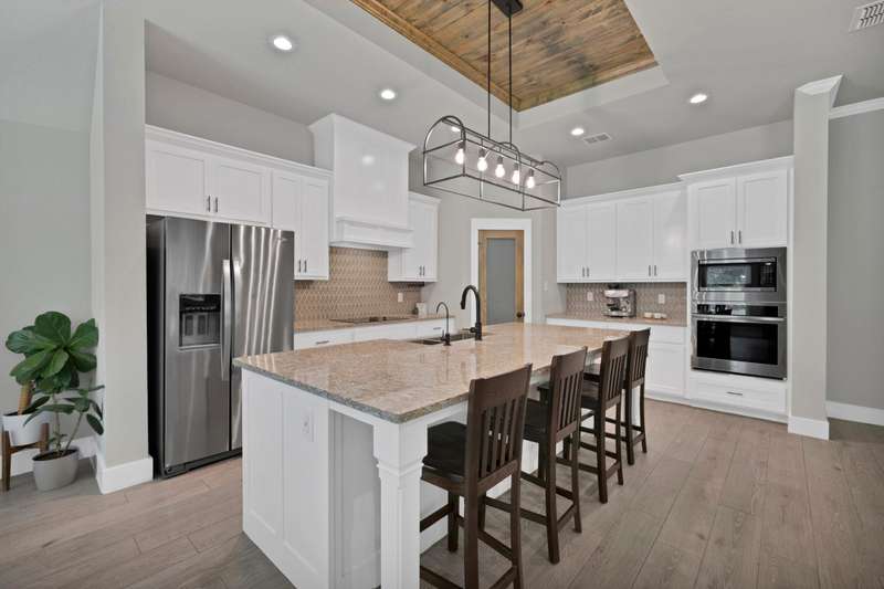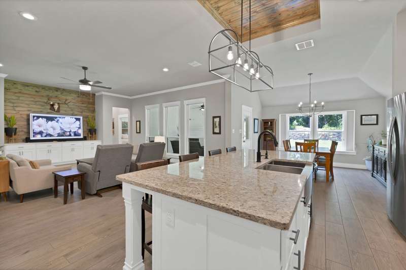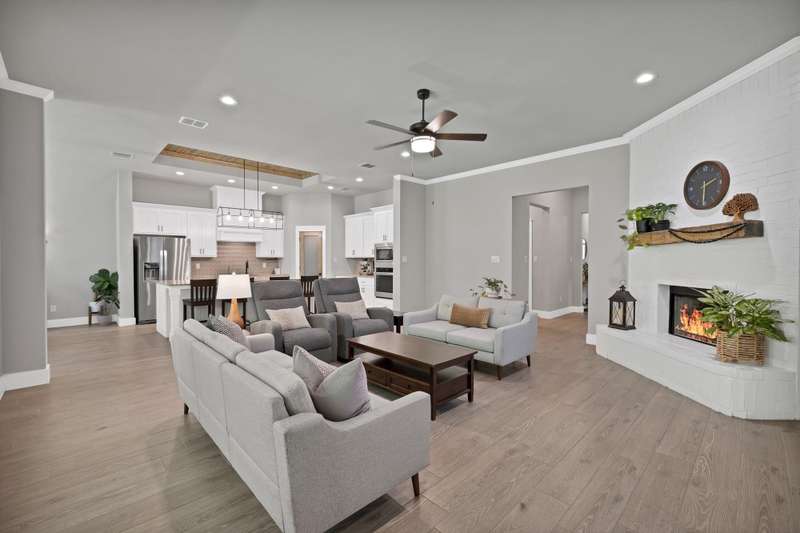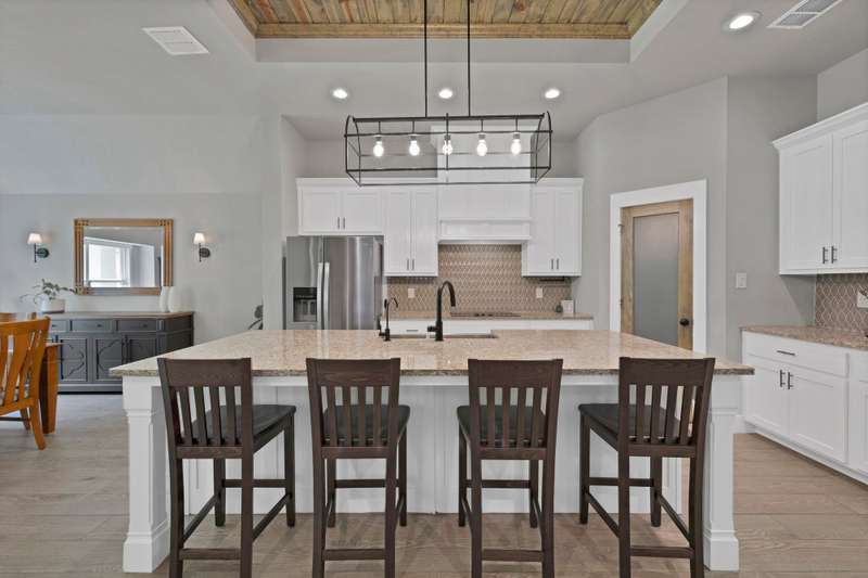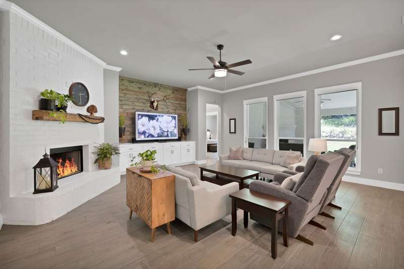Discover the perfect harmony of style, serenity and comfort in this stunning one-story home, ideally situated on a full acre just minutes from downtown Fort Worth and less than a mile from the sparkling waters of Eagle Mountain Lake. With 2,410 square feet of beautifully designed space, this 4 bedroom home offers an open floor plan tailored for modern living and effortless entertaining. From the moment you step inside, youll be greeted by warm wood-look tile floors and custom wood accent walls that add charm and character throughout. Thoughtfully designed built-in cabinets and shelving provide both beauty and functionalityideal for displaying treasures or keeping life organized. The spacious kitchen features gleaming granite countertops, built-in stainless steel appliances, and a large island that anchors the space for gatherings and conversation. It also includes a reverse osmosis water filtration system at the kitchen sink and refrigerator for added purity and convenience. Natural light pours into the spacious living area, creating an inviting ambiance for relaxing or hosting guests. Step outside to your private outdoor oasisan expansive covered patio with a cozy fireplace, perfect for enjoying crisp evenings or quiet mornings surrounded by nature. The 3-car garage, complete with durable epoxy floors, ensures space for your vehicles, hobbies, and storage needs. Best of all, youre just moments from Eagle Mountain Lakes fishing, boating, swimming, and marinaoffering year-round recreation and relaxation. Whether you're drawn to peaceful sunsets, weekend adventures, or the convenience of nearby city amenities, this Azle retreat truly has it all. This isn't just a houseit's the lifestyle you've been waiting for. Welcome home.