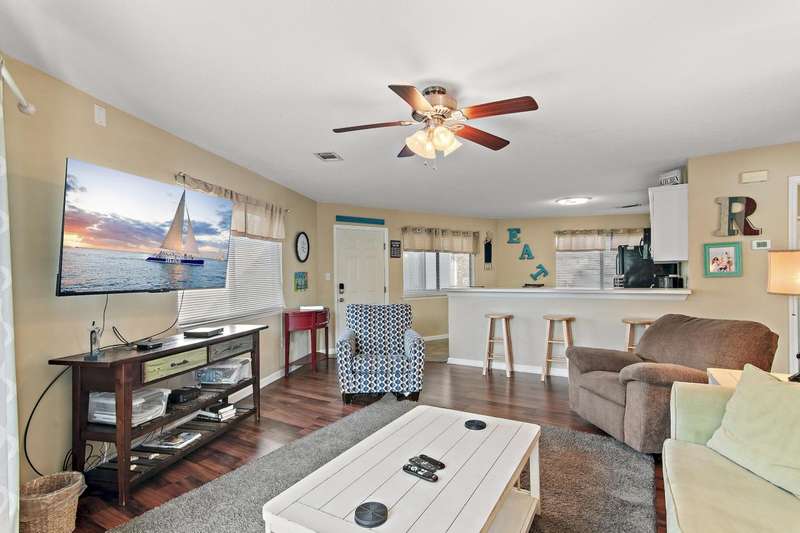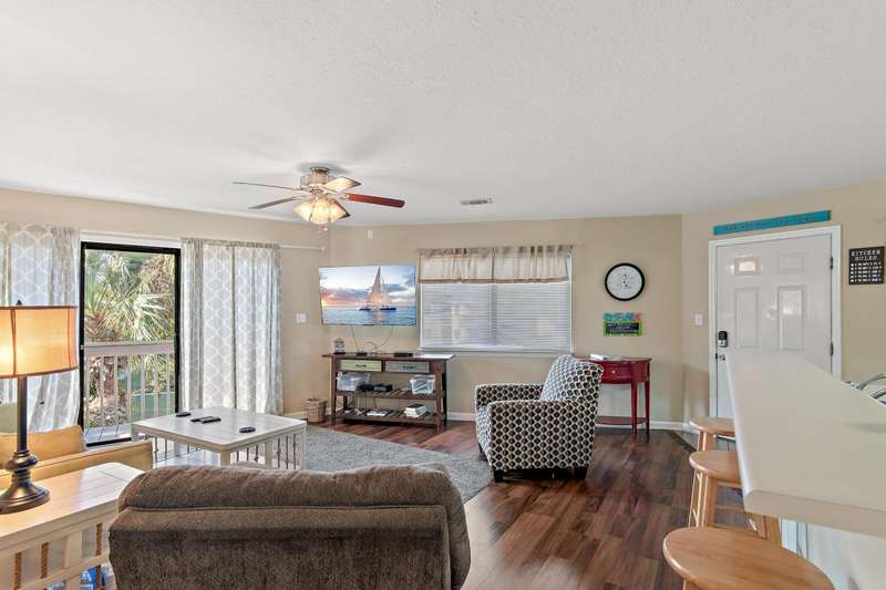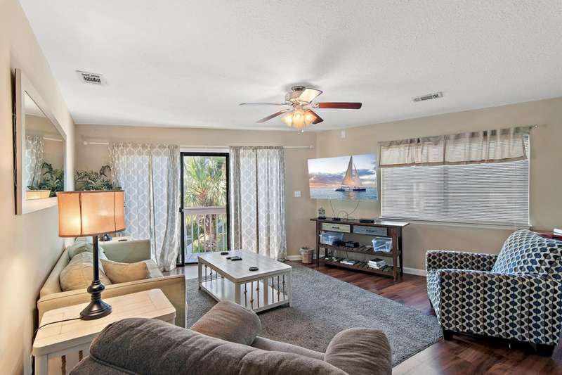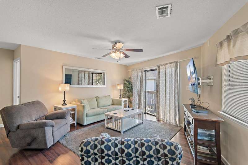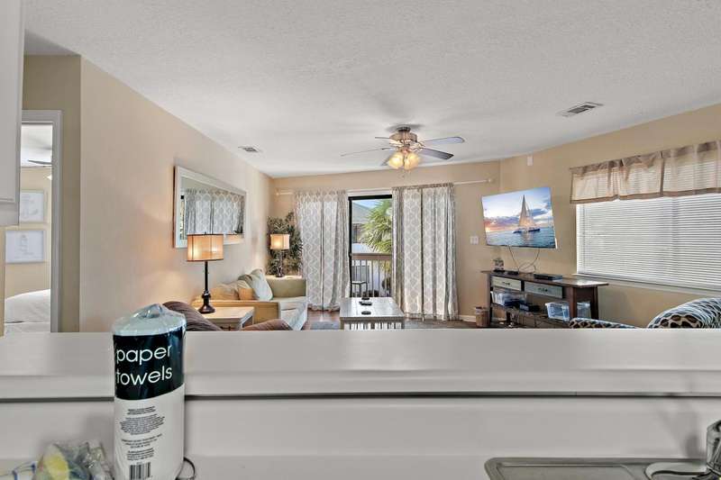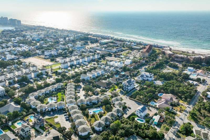 This top floor, fully furnished, and newly painted unit at Crystal Village located just 2.5 blocks from the spectacular South Walton beaches and Pompano Joe's beachfront restaurant! Never miss a sunset with a spacious private deck overlooking perfectly manicured grounds and a community pool, one of two at Crystal Village. This unit is the perfect vacation rental as the second bedroom includes bunks and an owner's closet as well. Crystal Village is perfectly located between Scenic Hwy 98 and the main Hwy 98, with easy access to all of the restaurants, shopping, and of course the world class beaches that this area is famous for! Come take a look. Roof was replaced in 2023. Buyer to please verify all information contained herein.