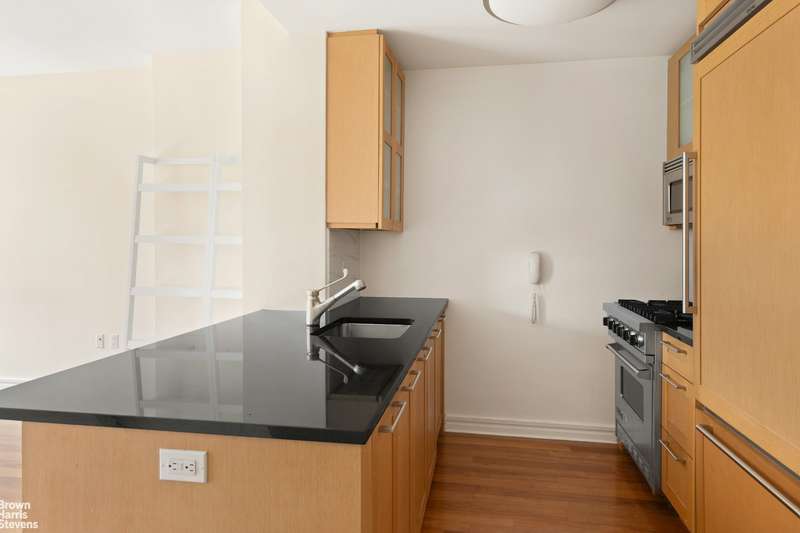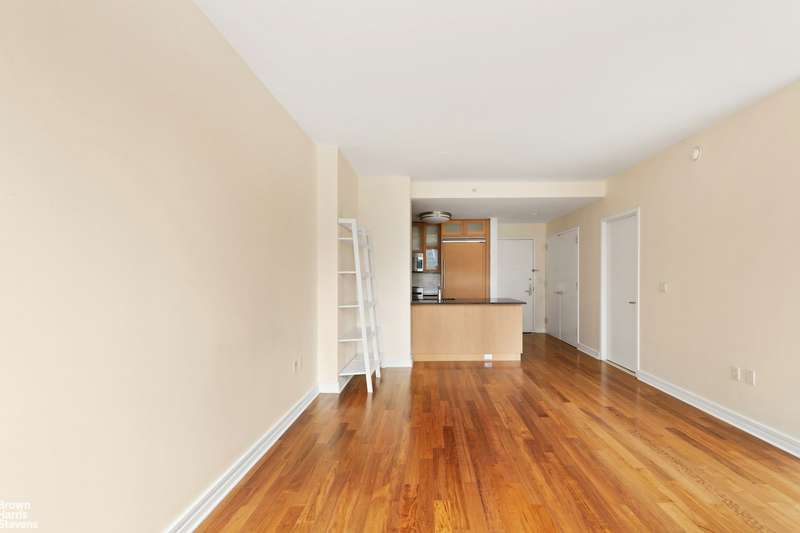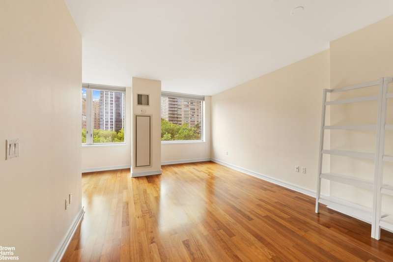 This bright and generously sized east-facing alcove studio offers abundant natural light and open city views through oversized windows. The home features rich Brazilian Cabreuva hardwood floors, excellent closet space, and an in-unit washer and dryer for added convenience.