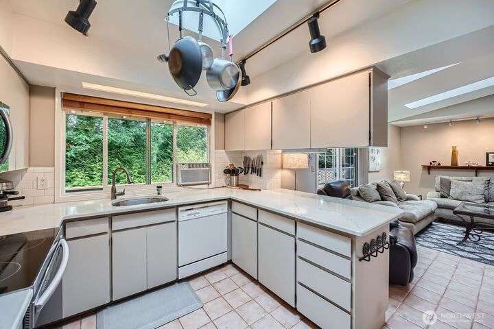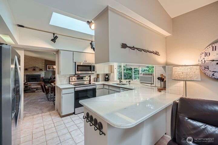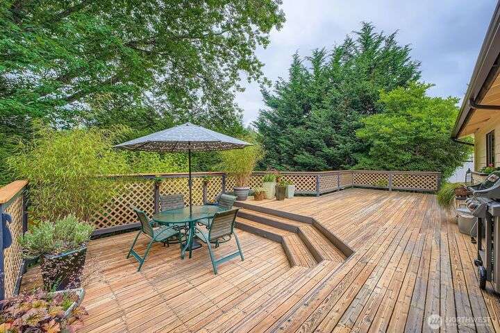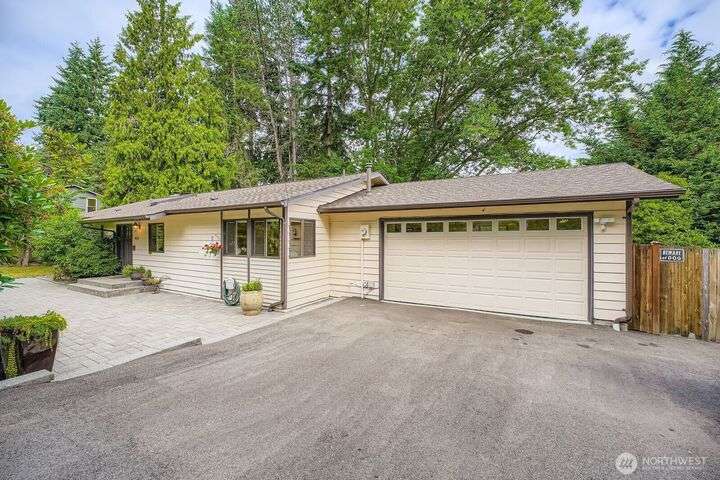 Stunning Rambler with finished daylight basement. Located in Quinault Estates. First time on the market in 49 years! Nestled on the end of quiet dead end road, steps from Wayne park blocks away from Burke Gilman trail. Highly sought after Northshore School District. Home is surprisingly large. Great for entertaining w/wet bar. Vaulted ceilings, spacious layout, lots of natural light! Cozy living room with updated, floor to ceiling custom brick Fireplace. Kitchen boasts Quartz counter tops. Brick court yard in front w/expansive deck in back. Lots of privacy! 2025 new Roof, Attic insulation, Gutters w/leaf guards and downspouts. All new windows and multiple interior doors throughout. Location has easy freeway and snow access in winter.