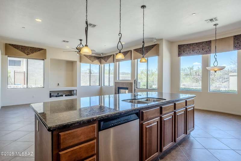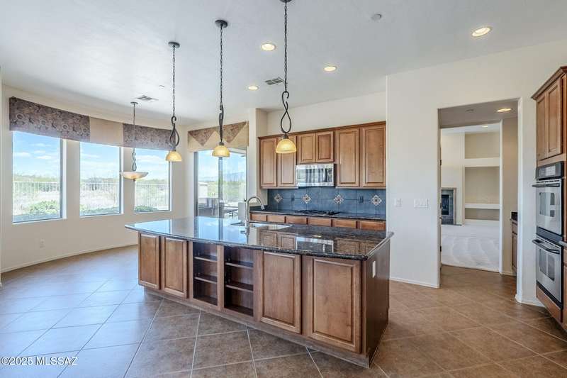Seller will accept or counter offers between $965-$975,000. Impressive entry opens to a bright and open great room and dining that brings outdoor views inside! Soaring ceilings throughout. Gourmet island kitchen features ample cabinets, double oven and wet bar/prep sink and breakfast nook.Open &airy family room, w/ surround sound and double sided gas FP! Oversized master suite, with glass doors and views leading to the pool and spa! Luxurious primary bath offers a double vanity , jetted tub, large dual control walk-in glass shower and 2closets! Jack & Jill bath between 2 large BRs along with 2 additional BRs makes this a popular floorplan! Comfortable, north facing covered patio, overlooking an inviting pool and spa. Tranquil yard backing close to hiking trails & dark star filled sky