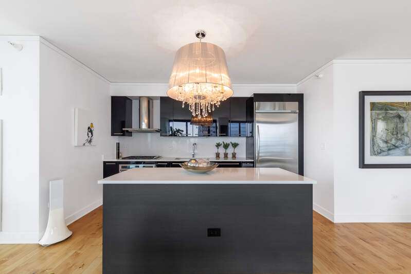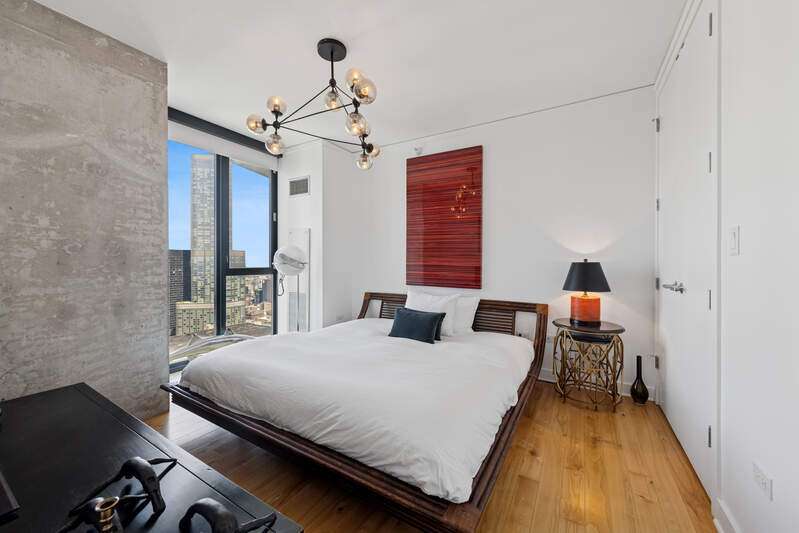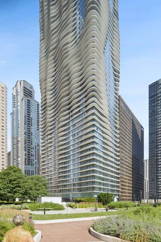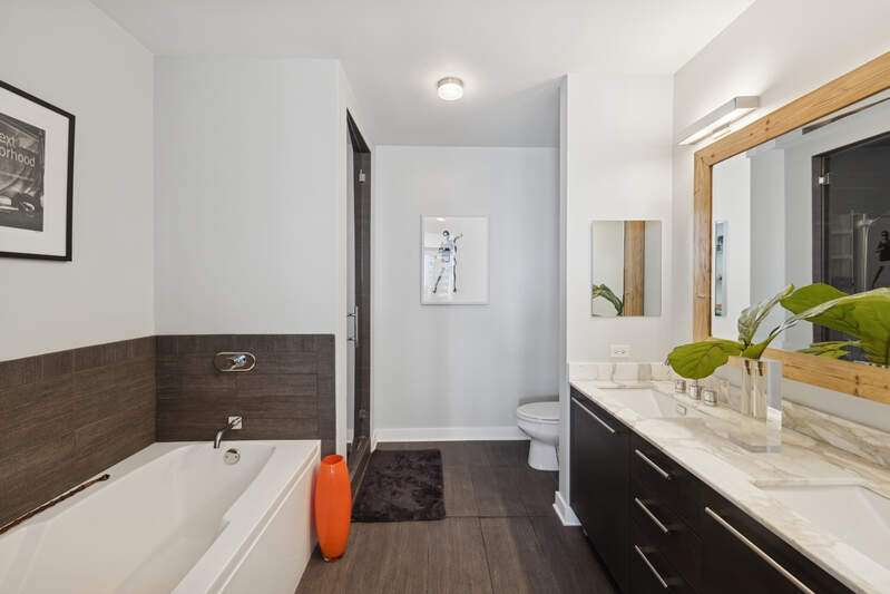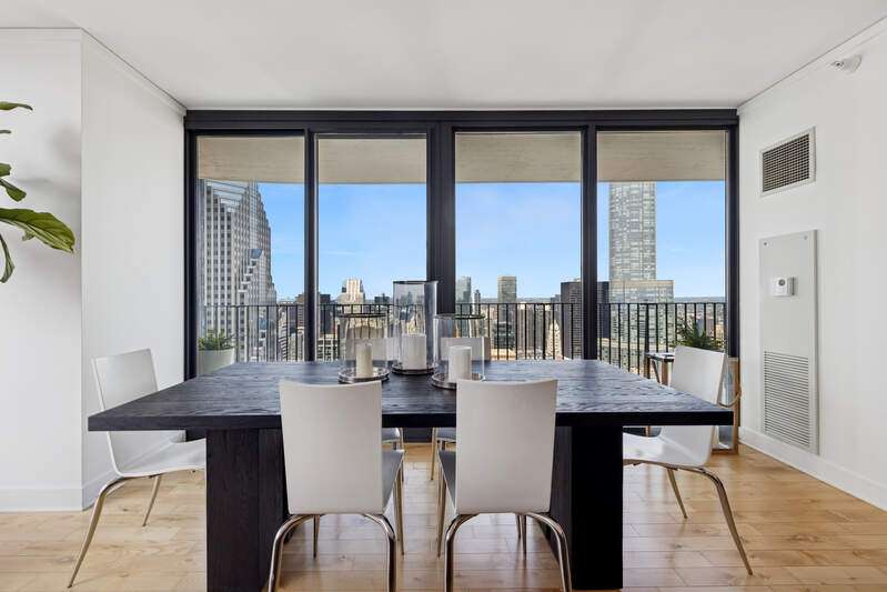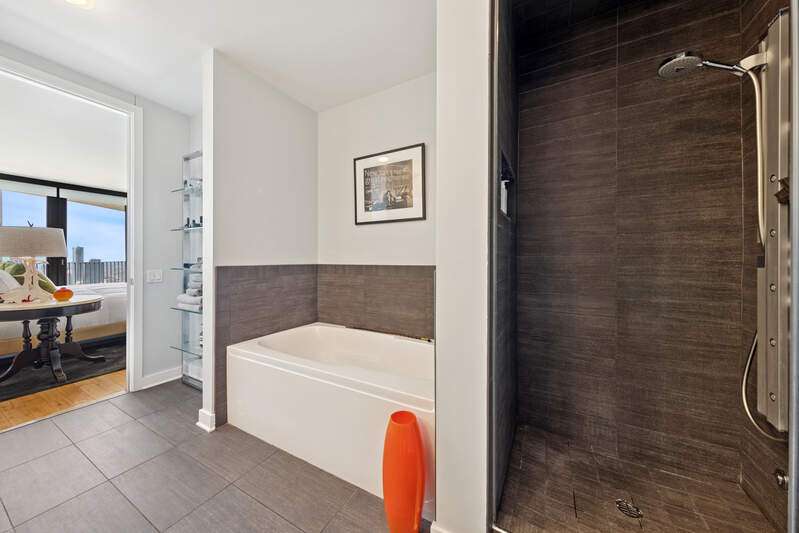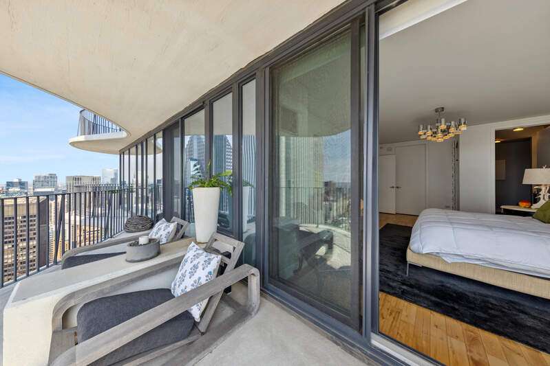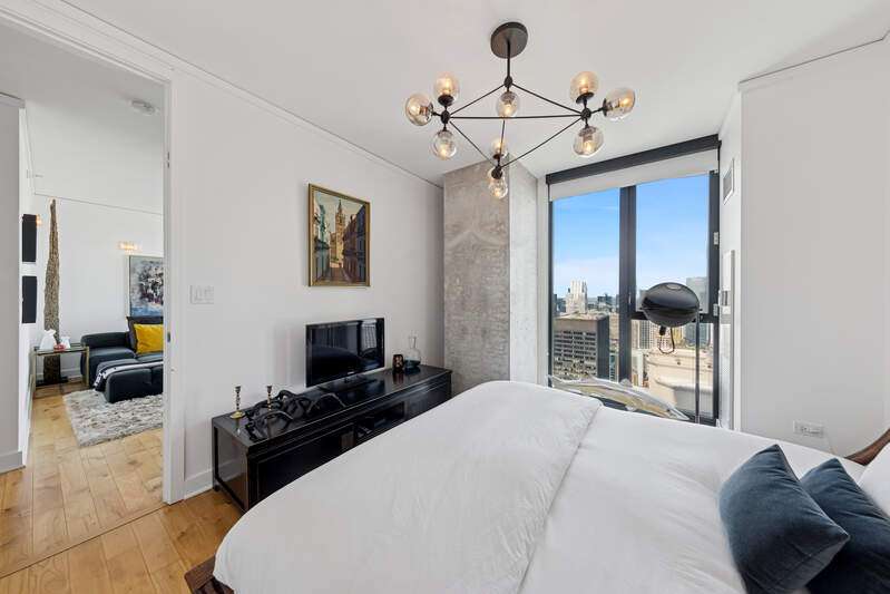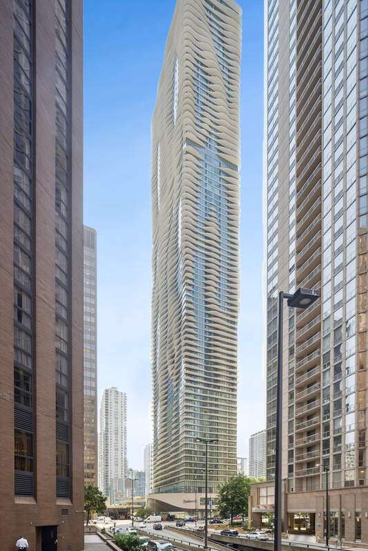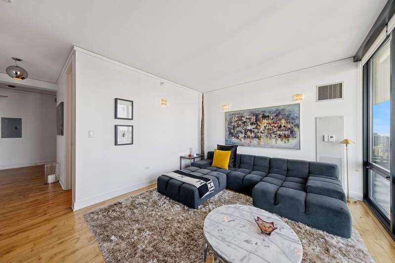 This Southwest corner condo was thoughtfully re-imagined to be a luxury larger two bedroom with a second living space in the award-winning Aqua Building. Each room offers floor to ceiling windows with stunning panoramic views of the lake, Grant Park and the western skyline. Enjoy unique outdoor living on the 75 foot terrace. Spacious living room and dining areas feature white ash hardwood floors throughout and carefully selected designer lighting. The kitchen boasts modern Snaidero cabinets, quartz countertops and backsplash along with Wolf and Miele stainless appliances. The stunning additional living space with western skyline views can be used as a family room, an office or converted back into a third bedroom and has been carefully designed with a media built-in unit. Escape into the primary bedroom suite with custom walk-in closet and tranquil spa bath with yet more stunning views. Additional design touches include custom millwork, oversized doors and window treatments. The Aqua Building was thoughtfully created and offers some of the best amenities in the city including indoor/outdoor pools, basketball court, fitness center along with a private club suite for owners. This is a unique must-see corner unit.