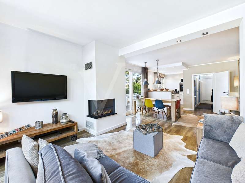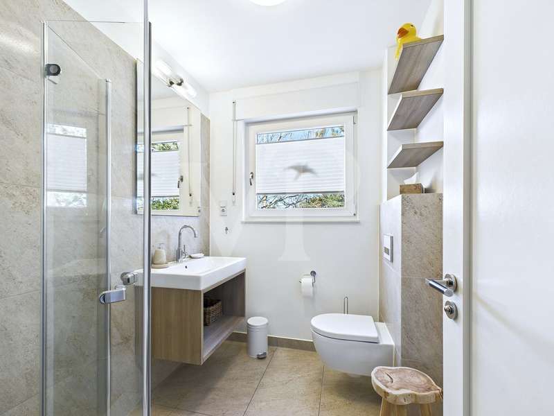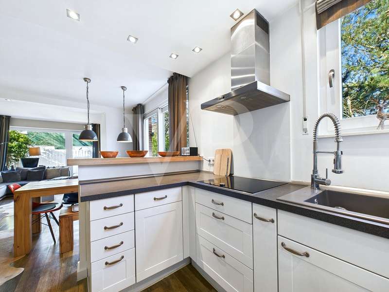 For sale is a modernized semi-detached house, which was built in 1985 and is situated on a spacious plot of approx. 610 m². With a living space of approx. 110 m², this property combines a well-thought-out room layout with upscale furnishings, offering a comfortable home for families or couples who value a stylish ambience. The heart of the house is the open-plan kitchen and living area, which guarantees a pleasant living atmosphere thanks to its open design. The fitted kitchen is fully equipped and offers ideal working conditions for amateur chefs. The transition to the living area is seamless and invites you to spend cozy evenings with family and friends. The semi-detached house has a total of five rooms, which can be ideally adapted to different living requirements. Three of them are designed as bedrooms and offer enough space for a family or guests. The two bathrooms are equipped to a high standard and contribute to a comfortable living experience. The floor coverings of the property consist of an appealing combination of tiles and vinyl, which support a modern and easy-care living atmosphere. You can relax and unwind on one of the spacious terraces, which are ideal for spending hours in the fresh air in summer. The adjoining garden offers plenty of space for leisure activities and is a highlight for garden lovers. A log cabin is also available. The property is heated by an efficient central heating system. On cold days, a gas fireplace provides additional cozy warmth. The upscale furnishings of the semi-detached house promise living comfort for discerning buyers who value quality and style. Overall, this property offers a successful combination of living comfort and generous space on a generously proportioned plot. See this modernized semi-detached house for yourself and arrange a viewing today. Special features: The property is suitable for renting out to vacation guests as well as for permanent owner-occupation. There is also the option of adding an extension or new build (approx. 100 m²) on the 610 m² corner plot. The owner has already started planning, but this is currently on hold.