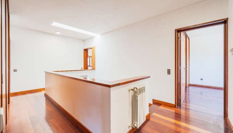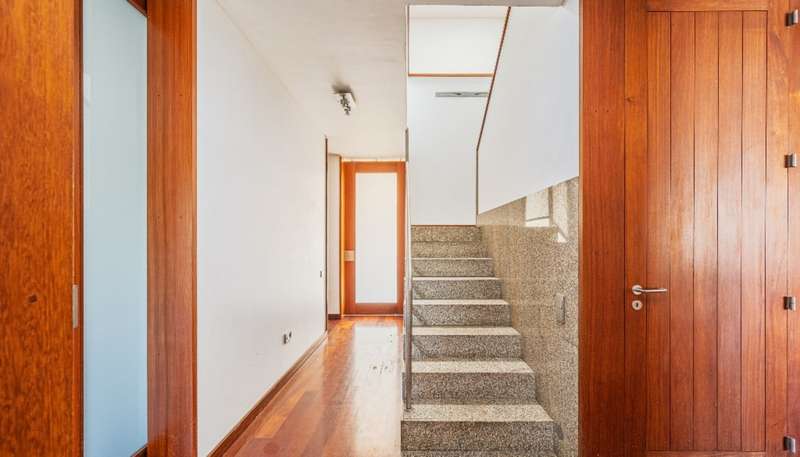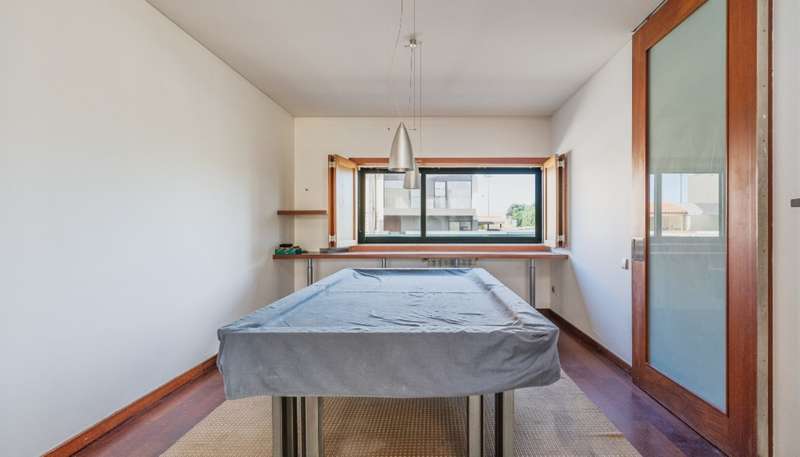 Elegant semi-detached house with 4 bedrooms and 630 m² of living space, situated in a quiet residential area of Lavra, just a few minutes from the beach. Spread over two floors, the house emphasizes functionality and comfort. On the entrance floor is the large social area, comprising a living room and dining room, an equipped kitchen with a dining area, a games room and a guest bathroom. On the same floor, the villa also has a garage for two cars, a laundry room/technical area, a regional kitchen and a support room. The outside invites leisure, with a surrounding garden, swimming pool and children's playground. On the upper floor are the four bedrooms, one of which is en-suite and the other a master suite with dressing room. All the bathrooms are finished to a high standard and two have natural light. Location in a quiet residential area of single-family homes, just a few minutes from the beach and close to the A28 and EN13. 15 minutes from Francisco Sá Carneiro Airport and with easy access to Matosinhos, Vila do Conde and the city of Porto. Nearby you'll find supermarkets, schools, pharmacies, restaurants, footpaths and cycle paths along the seafront. CHARACTERISTICS: Plot Area: 932 m2 | 10 034 sq ft Deployment Area: 450 m2 | 4 844 sq ft Building Area: 660 m2 | 7 104 sq ft Bedrooms: 4 Bathrooms: 5 Garage: 2 Energy efficiency: C FEATURES: Solid Afizélia wood flooring; Granite in kitchens and bathrooms; Double-glazed windows; Wooden shutters; Central heating with wall-mounted gas boiler; Wall-mounted radiators in all rooms Sanitary water heating.