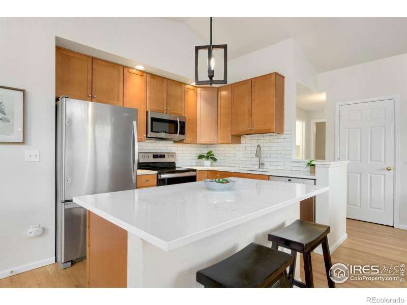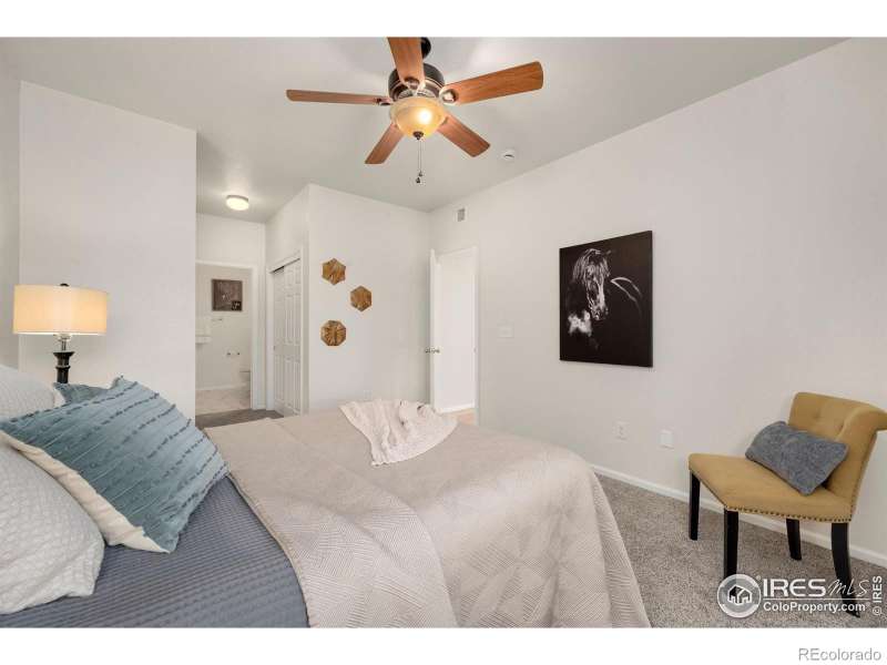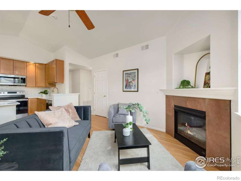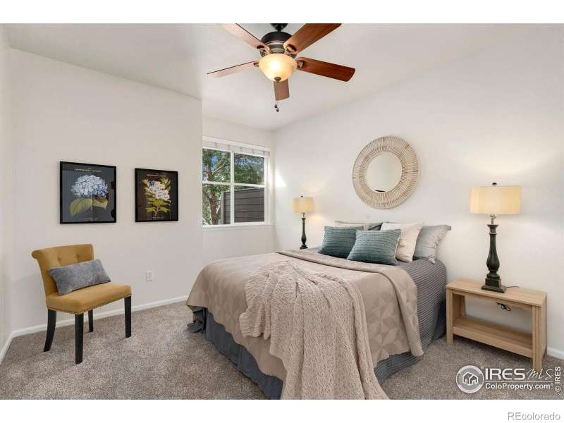 A beautifully updated 2-bed, 2-bath 2nd floor condo. This home blends modern upgrades with a serene setting, offering the perfect combination of comfort, style, and convenience. Enjoy the fresh feel of new interior paint, carpet, + refinished hardwood floors. The kitchen & baths shine with brand-new quartz countertops, while luxury vinyl plank flooring in the baths adds both durability & elegance. The open-concept layout offers easy flow between living, dining, and kitchen spaces-perfect for entertaining or cozy nights in. Large windows bring in natural light + the private second-floor location ensures added quiet and privacy. Surrounded by mature trees & blooming flowers, this condo sits in a tucked-away neighborhood that feels like a retreat yet is minutes from everything. Enjoy easy access to lakes, scenic trails, restaurants, shopping, & the I-25 corridor, making commuting or weekend getaways a breeze. Whether you are a first-time buyer, downsizer, or investor, this lovingly updated condo offers low-maintenance living in an unbeatable Loveland location. Don't miss your chance to call this tranquil, turnkey property home!