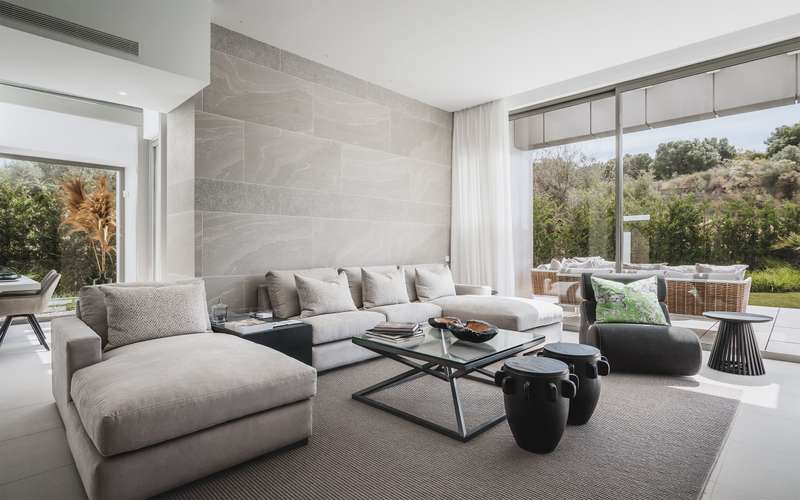 VILLA ANTOINETTE Introducing King's Hills, a collection of nine luxury villas in the established development of El Paraíso, on the New Golden Mile. Located between San Pedro and Estepona, it is a 10-minute drive from the famous Puerto Banús and the old town of Marbella . King's Hills consists of nine independent villas that vary slightly in size, style and layout, but all built in harmony with the same qualities and finishes. Each villa is built on three floors and faces southeast, including on the ground floor a spacious and elegant open-plan living and dining room with a modern and practical integrated kitchen built with appliances from high-end German firms, which combine smart technology with a warm architectural design. The living room has access to the terrace and the private garden and pool. The bedrooms have en-suite bathrooms, electric blinds and wooden floors. In addition, there is underfloor heating throughout the house, which gives it a feeling of warmth and elegan