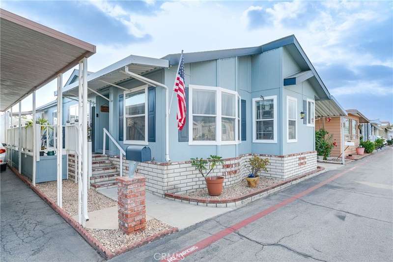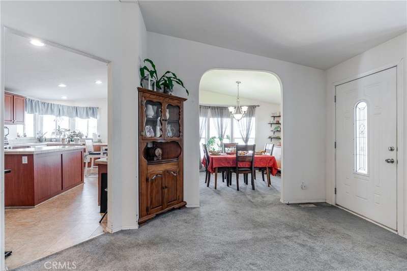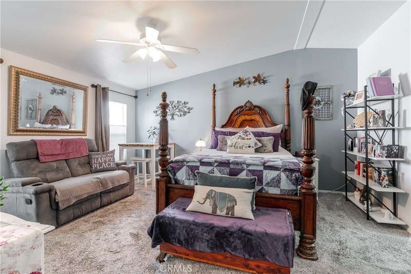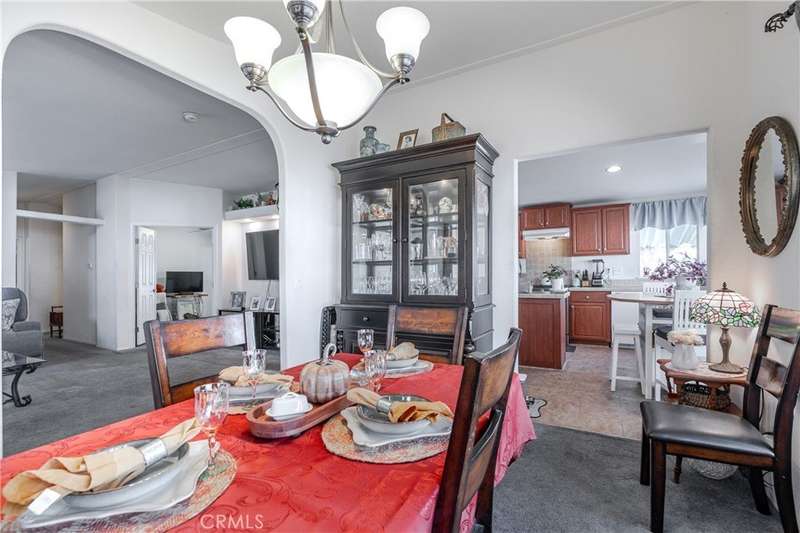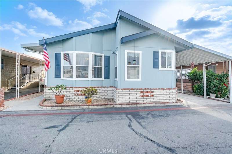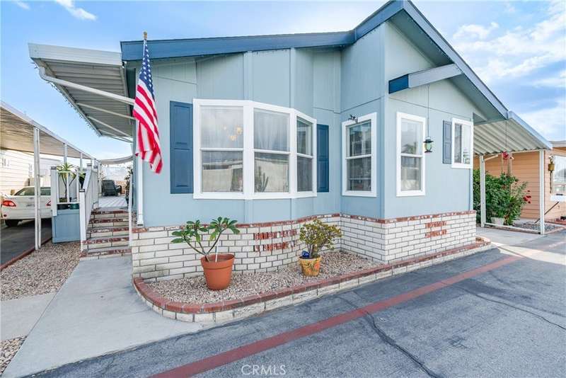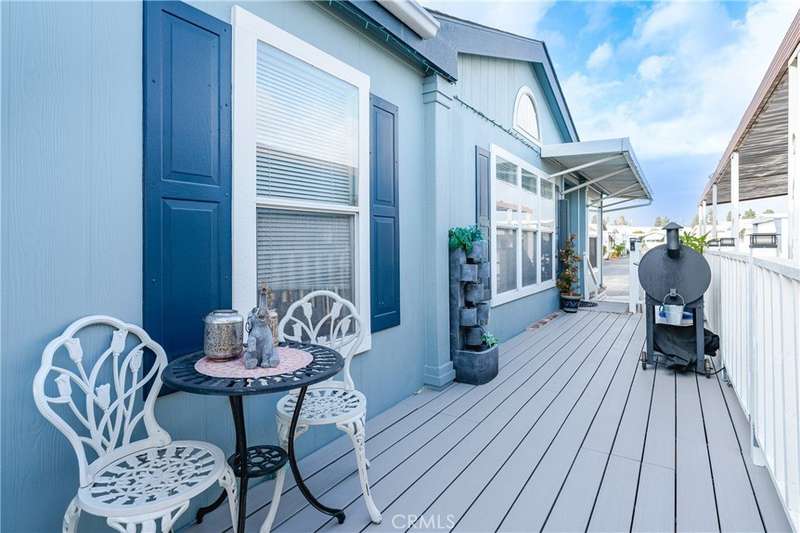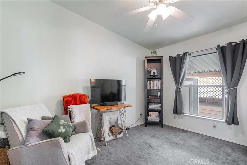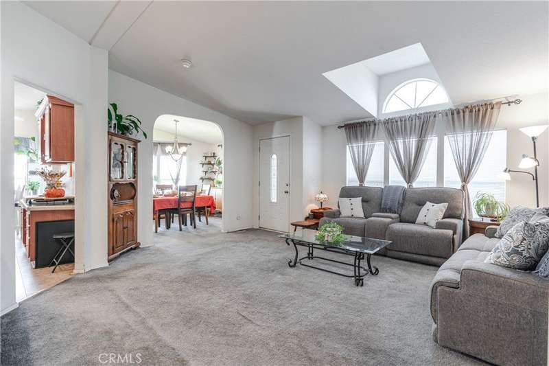 This newer manufactured home, built in 2006, is located in the desirable Daleview Estates 55 years+ senior park. From the front brick-detailed walkway and pebble-stone garden, this handsome manufactured home offers modern comfort and effortless convenience. Step through the welcoming front door to a light and bright living room with a row of windows, vaulted ceiling, decorative half-moon ceiling-level window and an entertainment cubby area with recessed lighting. The inviting formal dining room offers a north-facing bay window and pendant light fixture. The large gourmet kitchen is a chef's delight with extensive cabinet and countertop space, large center island, built-in sideboard, double stainless steel sink at the bay window with mountain views, stainless steel stove and refrigerator, pantry, and a cozy eating area. The home offers a spacious 1,574 square feet of living space, 2 bedrooms, 2 bathrooms, and a den that could be used as a third bedroom. The ensuite primary bedroom is a serene delight, with direct access to a side deck for relaxing in a private space with calming ambient night lighting. The oversized primary bathroom offers a walk-in shower, large storage cabinet, linen closet and dressing area. Other amenities include a well-designed floor plan, separate laundry room with washer and dryer, central air and heat, ceiling fans and recessed lighting. The exterior space includes 2-car carport parking and 2 storage sheds. The park has a community pool and spa, clubhouse, plenty of guest parking, a walking trail with sitting areas among lush gardens, and a covered barbecue area with picnic tables for outside entertaining.