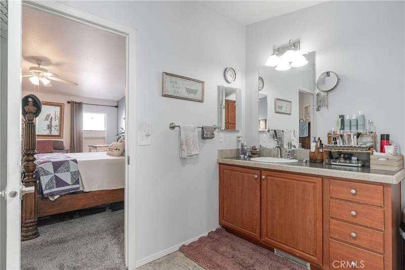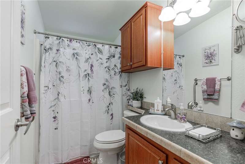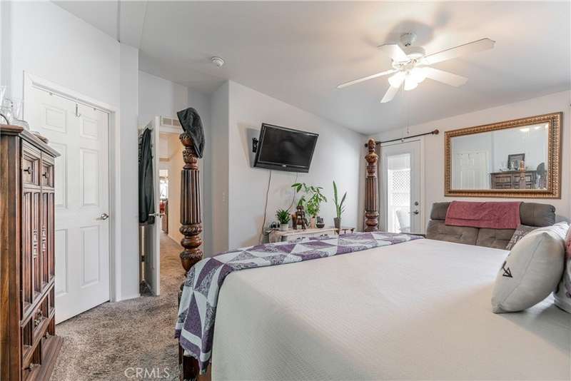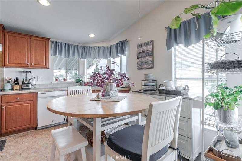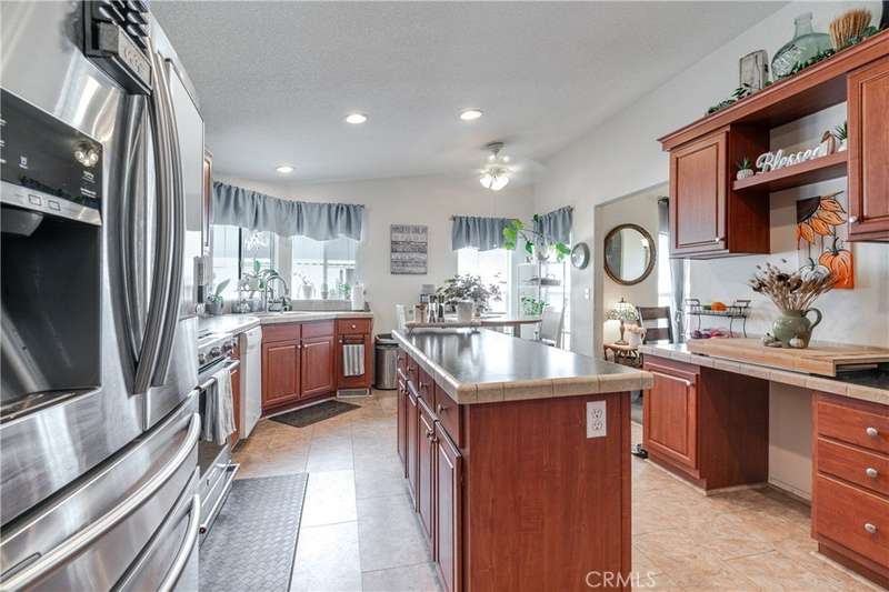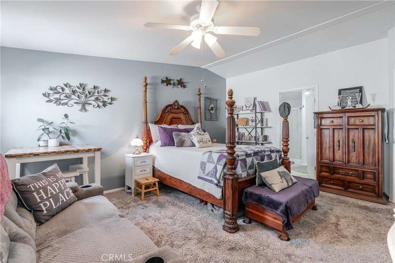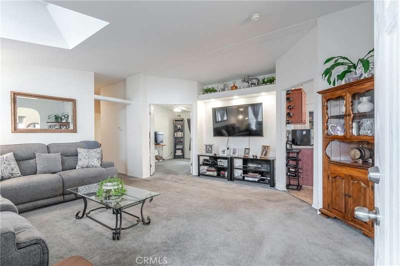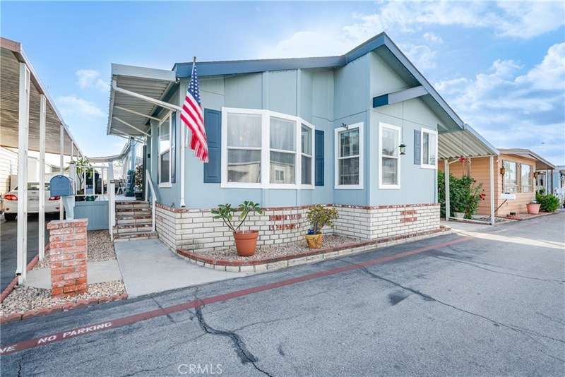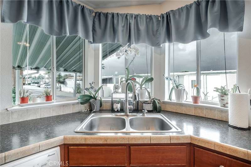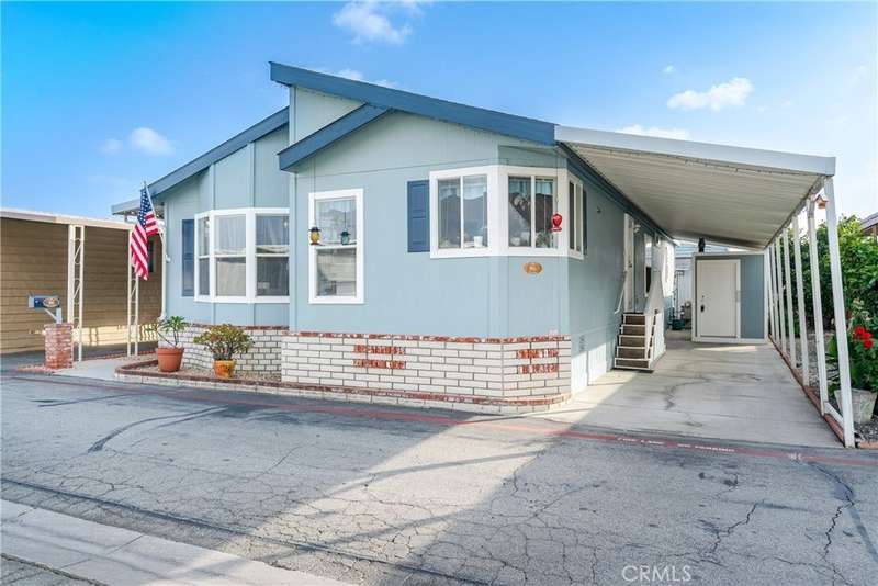 This newer manufactured home, built in 2006, is located in the desirable Daleview Estates 55 years+ senior park. From the front brick-detailed walkway and pebble-stone garden, this handsome manufactured home offers modern comfort and effortless convenience. Step through the welcoming front door to a light and bright living room with a row of windows, vaulted ceiling, decorative half-moon ceiling-level window and an entertainment cubby area with recessed lighting. The inviting formal dining room offers a north-facing bay window and pendant light fixture. The large gourmet kitchen is a chef's delight with extensive cabinet and countertop space, large center island, built-in sideboard, double stainless steel sink at the bay window with mountain views, stainless steel stove and refrigerator, pantry, and a cozy eating area. The home offers a spacious 1,574 square feet of living space, 2 bedrooms, 2 bathrooms, and a den that could be used as a third bedroom. The ensuite primary bedroom is a serene delight, with direct access to a side deck for relaxing in a private space with calming ambient night lighting. The oversized primary bathroom offers a walk-in shower, large storage cabinet, linen closet and dressing area. Other amenities include a well-designed floor plan, separate laundry room with washer and dryer, central air and heat, ceiling fans and recessed lighting. The exterior space includes 2-car carport parking and 2 storage sheds. The park has a community pool and spa, clubhouse, plenty of guest parking, a walking trail with sitting areas among lush gardens, and a covered barbecue area with picnic tables for outside entertaining.