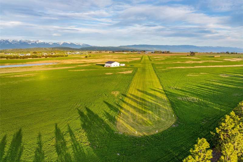 FAA Certified Private Airport on 83 pristine un-zoned acres in Northwest Montana's scenic Flathead Valley! Located 1 mile north of Flathead Lake, breathtaking 360 degree views include Glacier National Park, Jewel Basin Recreation Area, Swan and Mission Mountain Ranges, as well as Whitefish Mountain and Blacktail ski resorts. Back country landing strips in the Bob Marshall & Great Bear Wilderness areas are accessible in minutes and many more recreational opportunities in Western Montana & Idaho are within an hours' flight await the flying enthusiasts. The Abel Ranch Airport has been in use since 1998, certified by FAA in 2003 and consists of two turf runways-(60 x 2600) & (60 x 3000) ft., airplane hangar, plus a pond. Additional purchase options and parcels also available. The sky's the limit with this one of a kind property! Build your dream home or transition to suburban residential tracts, inclusive of more hangars and homes with runway access. Bring your creative vision!