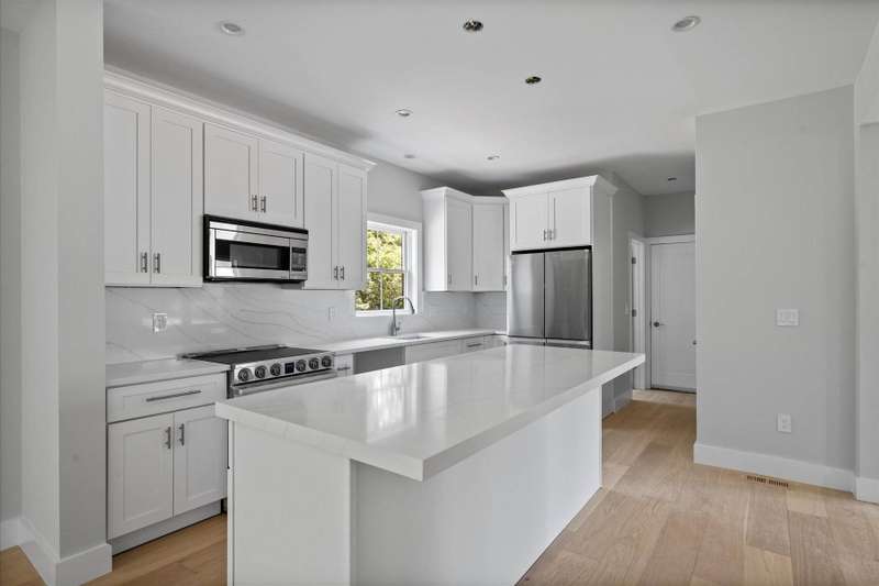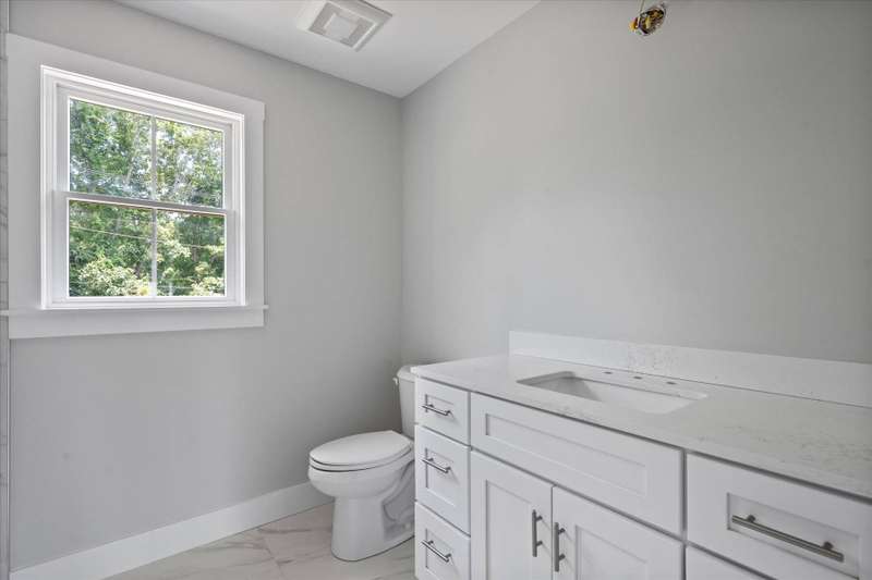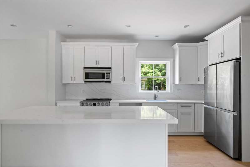Welcome to a brand-new, meticulously crafted home in the heart of Hampton Bays. This spacious 4-bedroom, 2-full and one-half bathroom residence offers the perfect blend of modern elegance, comfort and style. Sited in a prime location, on a private drive, south of Montauk Highway near all the desired amenities. The open floor plan with spacious living areas feature plenty of natural light and hardwood floors throughout. A chef-inspired eat-in kitchen is fully equipped with stainless steel appliances, center island, and sleek quartz countertops. The delightful mahogany front porch, 2-car garage and full basement with egress complete this brand-new offering. Ready for summer 2025 occupancy.