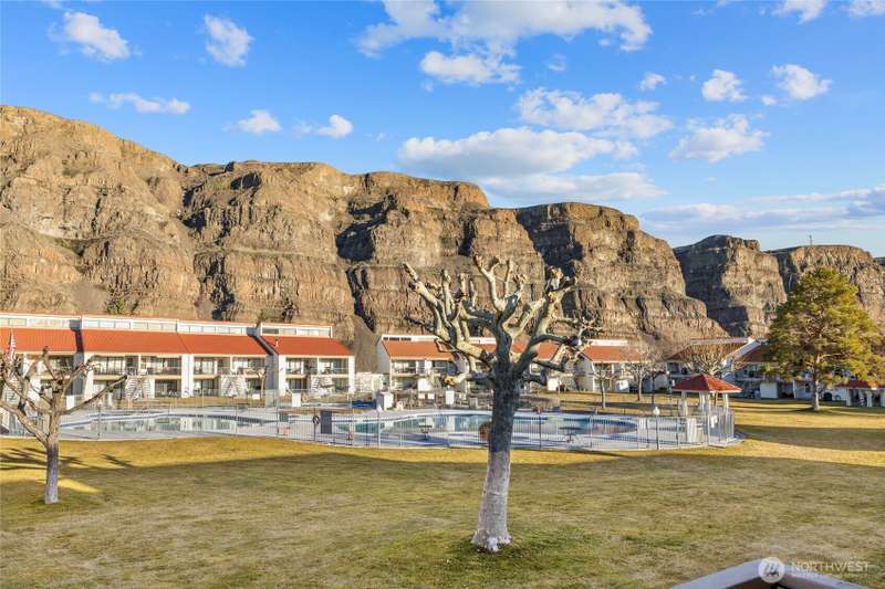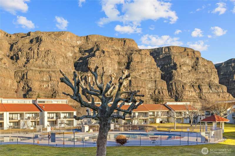 Welcome to your furnished dream vacation condo in the sun! This second floor condo is situated in a prime location w/ breathtaking views of the famous cliffs & the sparkling pool. The kitchen is well equipped w/ all the essentials you'll need to whip up a delicious meal. Enjoy dining al fresco on the covered patio while gazing at the views. This unit comfortably sleeps 6 w/ 2 queen beds, and 4 single beds. You'll wake up feeling refreshed & ready for another fun day on the golf course, boating on the river or meeting friends at the pool/hot tub. Amenities include: washer/dryer, D/W, A/C, TV's, HD Cable TV,BBQ, high-speed internet available. Don't miss this opportunity at Crescent Bar!