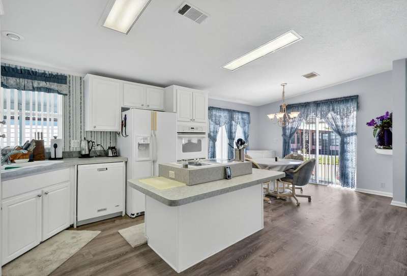 NO LAND LEASE! FURNISHED! Enjoy the Florida Lifestyle. Pet section-bring your furry friend. This home with light/bright open concept living area has everything you need: A cook top island, dishwasher, disposal, wall oven, fridge with ice maker and a reverse osmosis system for drinking water. Enjoy coffee on your balcony off the dining area! Newer A/C and HWH! Seamless walls. Beautiful luxury vinyl tile floors (bedrooms carpeted). Master bath with dual sinks. Large pantry/laundry room. Outside workshop 12X20. This turn key 2003 home was built to strict Miami Dade standards including 2 X 6 Exterior wall studs. Low HOA $197/mo. includes clubhouse amenities, cable, Internet, trash removal. You pay elect, lawn, water/sewer. Near shopping, restaurants and more. Measurements approx.