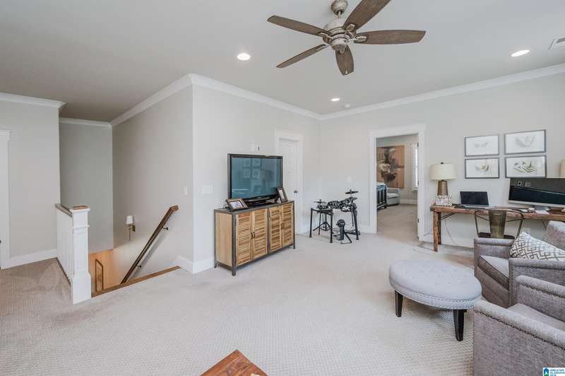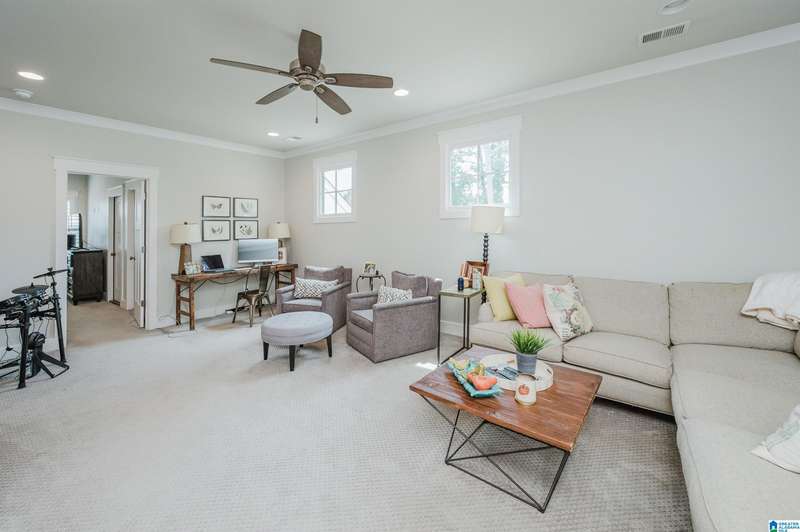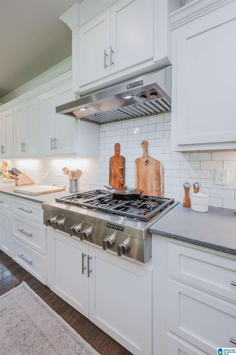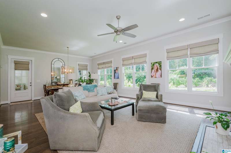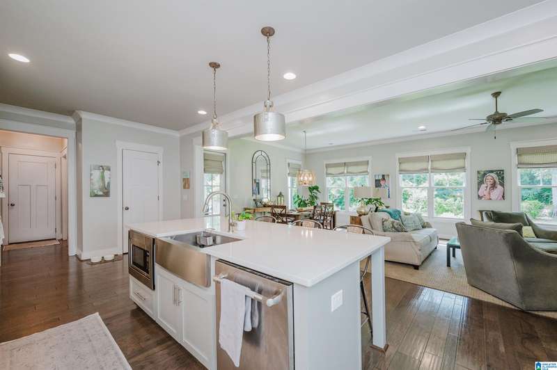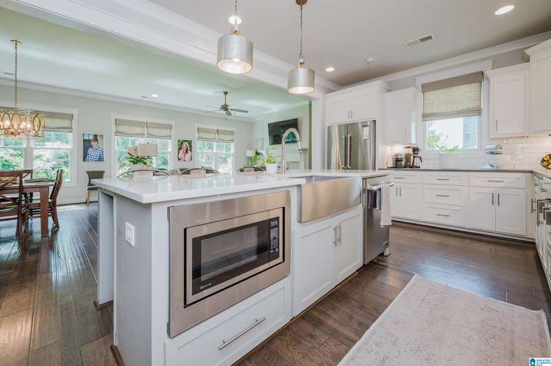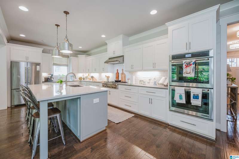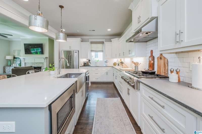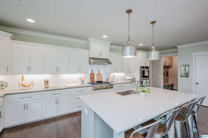 This Custom-built home offers an open floor plan with high-quality finishes. The gourmet kitchen is equipped with Jenn-Air double ovens, a gas cooktop, farmhouse sink, custom cabinetry, and an oversized island, perfect for entertaining. The main-level master suite includes a walk-in closet with built-ins. Upstairs, you'll find 3 spacious bedrooms, 2 full baths, and a second den/loft area. The backyard is one of the best in the neighborhood, featuring an outdoor patio with a beautiful fireplace. 3 car tandom garage. Extra features 9' ceilings, crown molding, tankless water heater, and walk-in floored attic storage.Vestavia Hills schools award-winning schools.