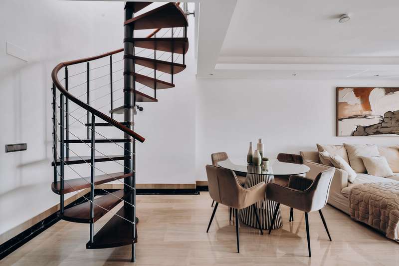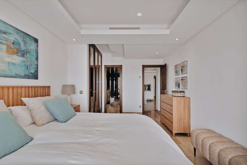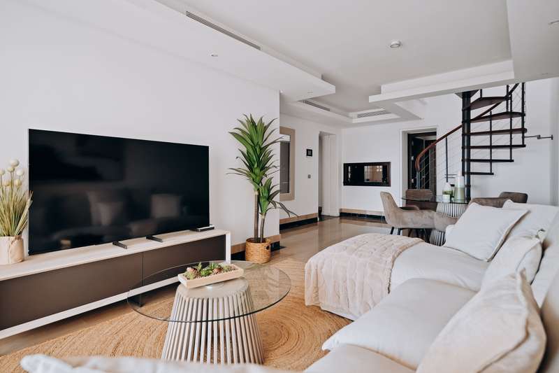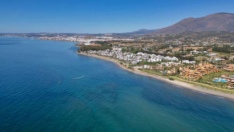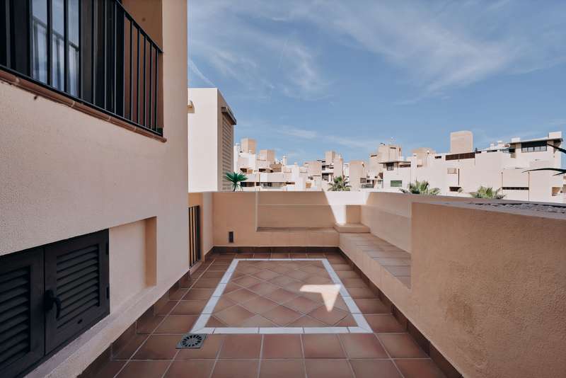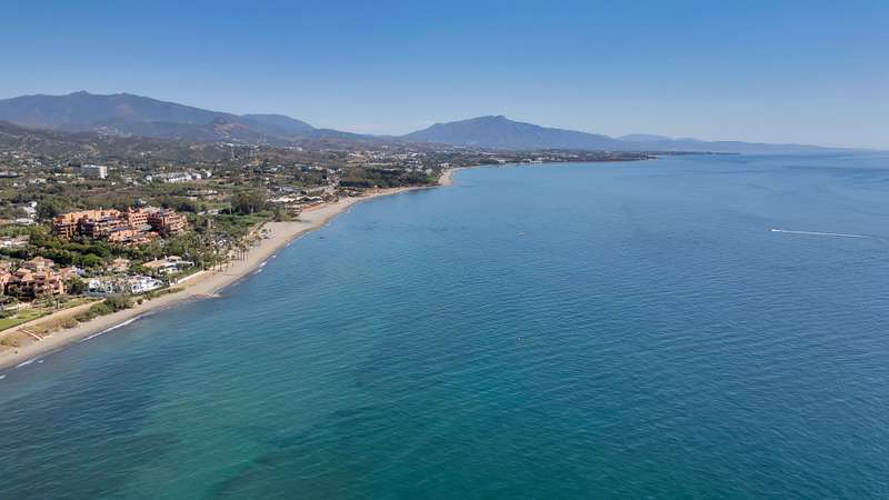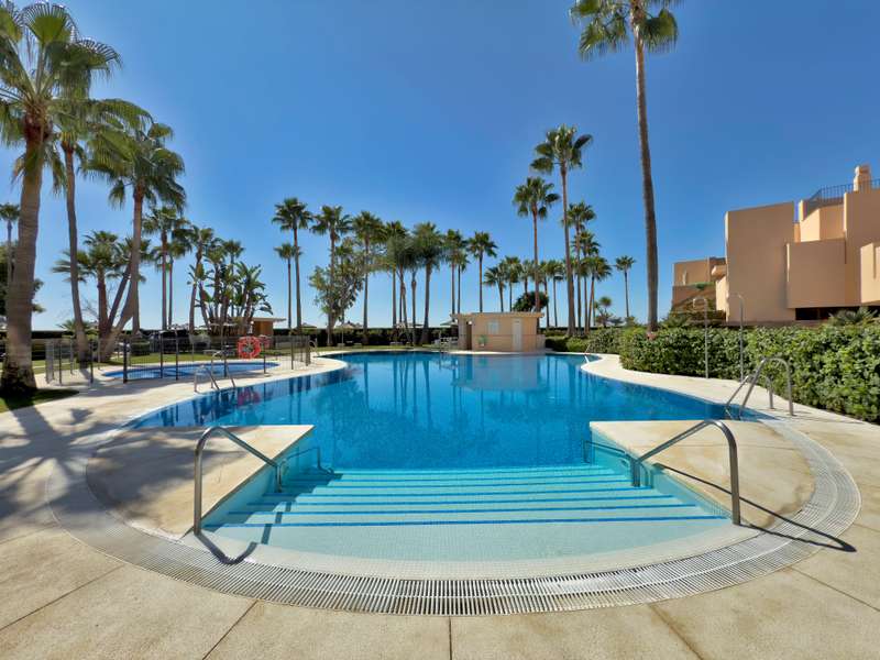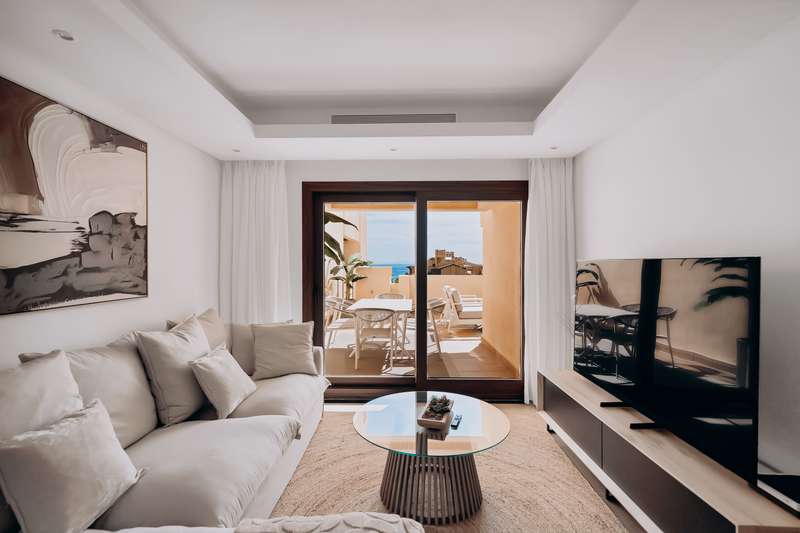 This spectacular 3-bedroom, 3-bathroom duplex penthouse, located in the prestigious Bahía de la Plata development, right on the beachfront in Estepona. A truly unique property that combines luxury, comfort, and an unbeatable setting with breathtaking views of the Mediterranean Sea and the Rock of Gibraltar. Fully renovated in a refined Nordic style, the residence offers bright open spaces, clean lines, and top-quality finishes, creating a sophisticated yet welcoming atmosphere—perfectly suited to the Mediterranean lifestyle. On the main floor, large windows connect the living-dining area with a private terrace, an ideal spot to unwind while enjoying the sea views. The modern, fully equipped kitchen blends seamlessly into the open-plan design, making it ideal for family life or entertaining guests. Each of the three en-suite bedrooms ensures privacy and comfort, with the master suite boasting direct access to the stunning panoramas. The property is in excellent condition, move-in rea