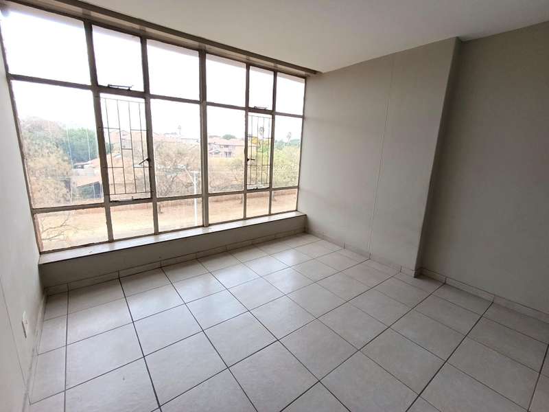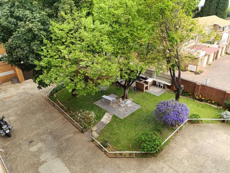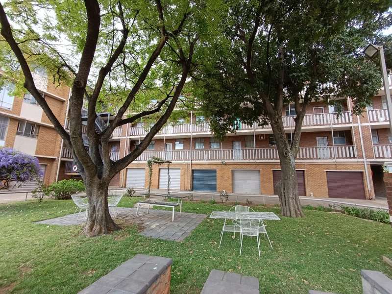 Top floor with a beautiful scenic view! Spacious and sunny open plan living room and dining room. Kitchen with built in cupboards and space for a washing machine and your fridge. 2 Spacious bedrooms, both with built in cupboards and a linen cupboard in the hallway. One bathroom with a bathtub and basin and separate toilet. One garage included. Play area for children. Communal garden and braai area with a water feature for a calming atmosphere. Lift in perfect working condition. CCTV cameras installed for added safety. Unfortunately, this complex is not pet friendly. Vicinity: Close to the highway, Gautrain Hatfield Station, Altewys Pre-School, Eduplex High School, Villieria Primary School, Voorpos Primary School and many other amenities.