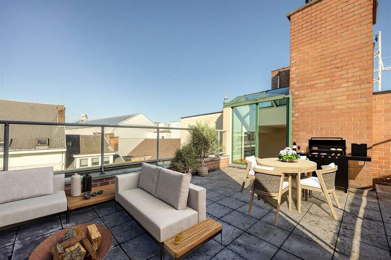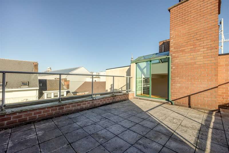 ANTWERP - Between Hopland and Meir: Penthouse with 30m² of sun terraces, in prime location. ; This flat is located in the city centre, between Meir and Hopland, in the most vibrant part of Antwerp city centre. With no fewer than 3 terraces of approx 30m² in total, including a sun terrace of approx 26m², it is great to enjoy, in peace and quiet, the city life. Unique opportunity or investment on AAA location. ; DESCRIPTION: ; Hall with separate toilet. Living room with super light (approx 20m²) on parquet floor. Small balcony on the street side. Deep storage room and also technical room. Very pleasant terrace (approx 26m²). Large kitchen (approx 16m²) in L-shape, equipped with appliances and dining area. Small terrace. Bedroom on parquet floor with built-in cupboard. Bathroom with washbasin, shower and washing and drying machine connection. ; Private cellar storage included. Bicycle storage available in the building's courtyard. ; PARTICULARS: - Prime location in the heart of the city centre - Incredible sun terrace - Individual gas heating - Double glazing throughout - PVC frame - Lots of natural light - Very central location - Charges: ca 200 €/month incl. reserve fund ;