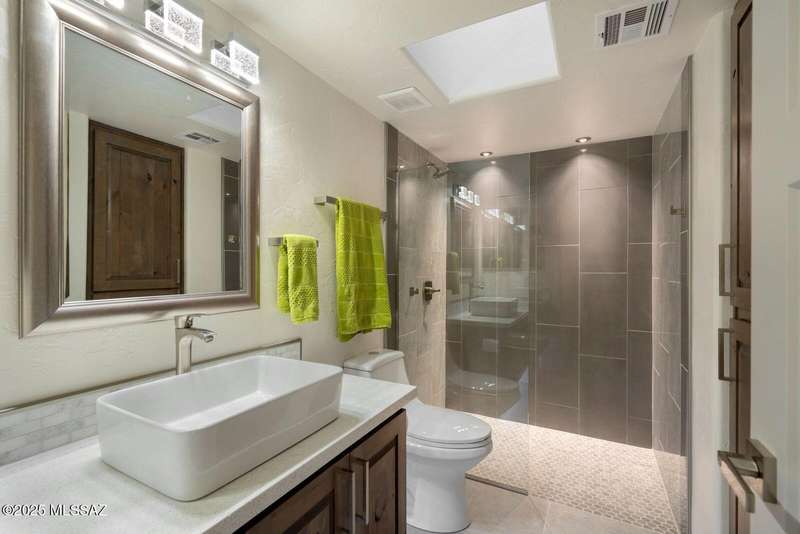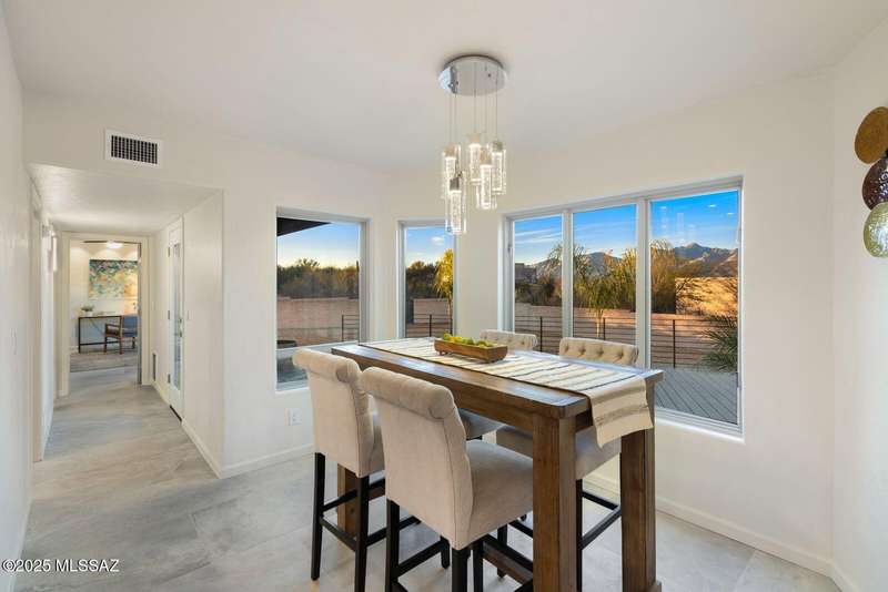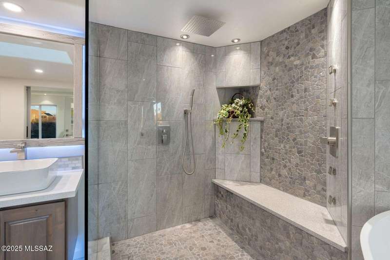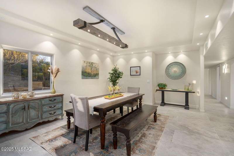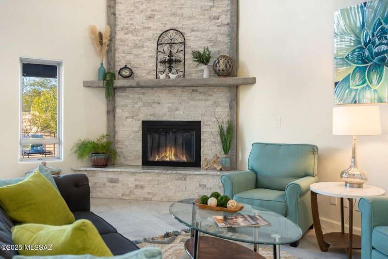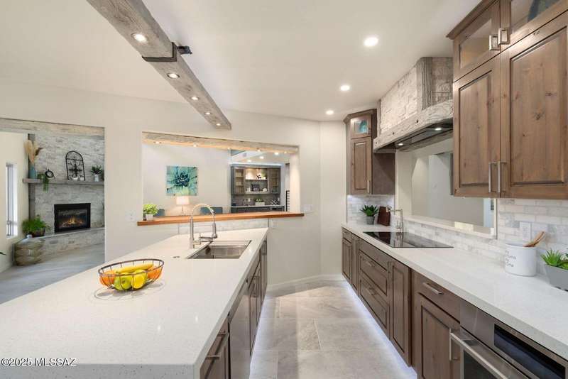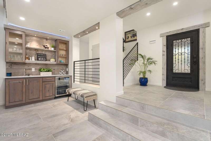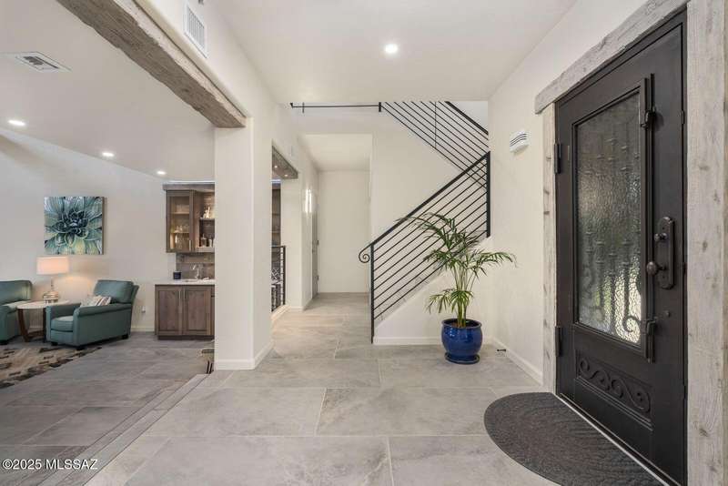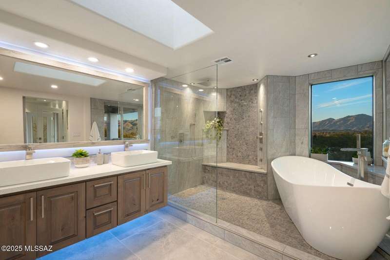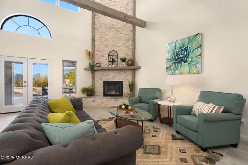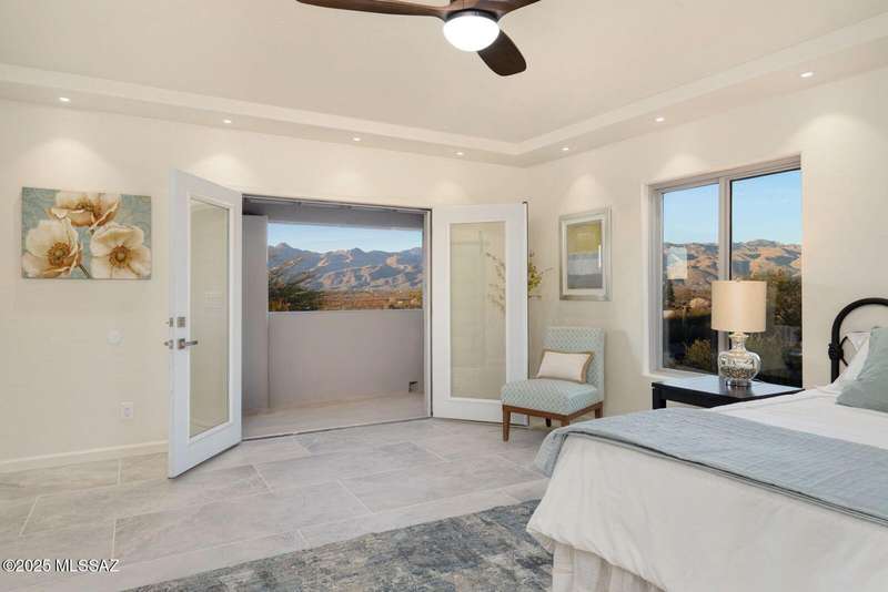 Totally updated custom home features superior craftmanship & fabulous finishes throughout set in a desirable, private neighborhood. Foyer opens to great room which showcases a dramatic stacked stone fireplace & stunning Catalina mountain views. Gourmet kitchen is invitingly open, ideal for entertaining. Formal dining off the kitchen as well. The split floor plan allows for numerous living options. Generous primary suite w/loft & two private balconies encompasses the entire upper level. You will love the luxurious primary bath featuring a soaking tub that overlooks more eyepopping views. Main level contains 4 additional bedrooms & 2 baths. Enjoy the raised patio deck & fully enclosed backyard ready for your creative concepts. Note that the photos show home when staged. Currently empty.