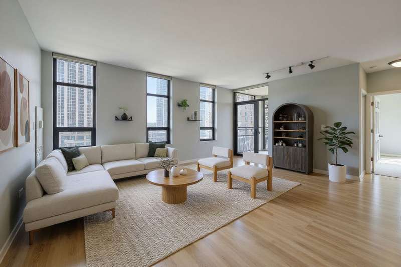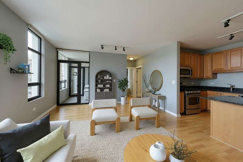 Welcome to this bright and inviting 2 bed, 1 bath southeast corner condo in the heart of the South Loop. The open living and dining area is filled with natural light, offering city views from every window and direct access to a private balcony for unwinding or enjoying morning coffee with a view. The kitchen features maple cabinetry, granite countertops, stainless steel appliances, and a large island that adds extra seating and storage. Hardwood floors run throughout the main living areas, while both bedrooms are carpeted for comfort and include windows, generous closet space, and flexible layouts for a home office or guest room. The bathroom is finished in stone and features a double-bowl vanity and soaking tub with shower combination. Additional highlights include in-unit laundry, central heat and air, and an extra-large heated garage space included in the sale price. This pet-friendly, full-service building offers 24-hour door staff, a fitness room, package receiving, and onsite management and maintenance. The monthly assessment covers gas, heat, air conditioning, basic cable, and internet. Prime location near Grant Park, Museum Campus, the lakefront, CTA lines, grocery stores, and some of the city's best restaurants and cafes.