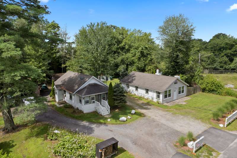 This acre and a half parcel consists of two small ranch style dwellings, multiple sheds, and a 2012 constructed barn. Listing detail represents building "A" which has rented for $1200 monthly. Building B is rented for $1250 monthly (mo. to mo.). Town cards are an attachment w/ plot plan. Key building is the 30x60 barn/garage. Contractors, hobbyists, take note. Tucked off the road, bring on the trucks, supplies, fabulous lot - walk up storage in barn. Work all night- high visibility location if one desires the attention. Light industrial zone. Seller financing feasible to qualified parties. Very unique and rare offering.