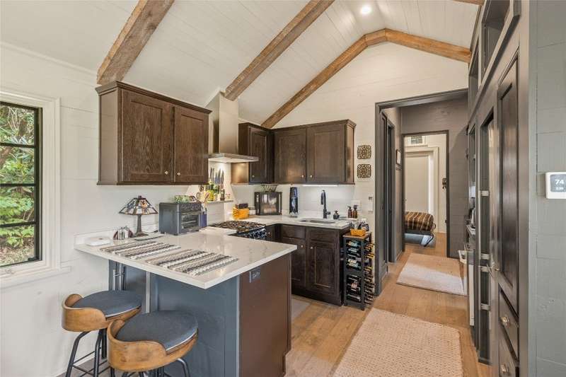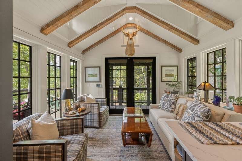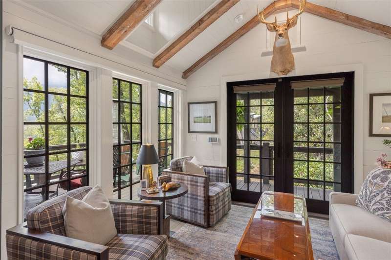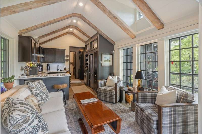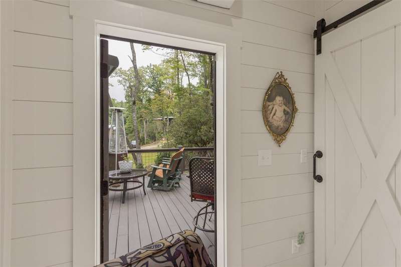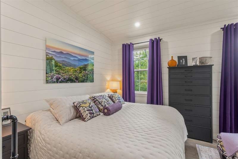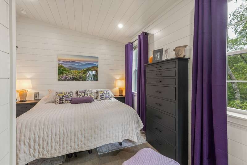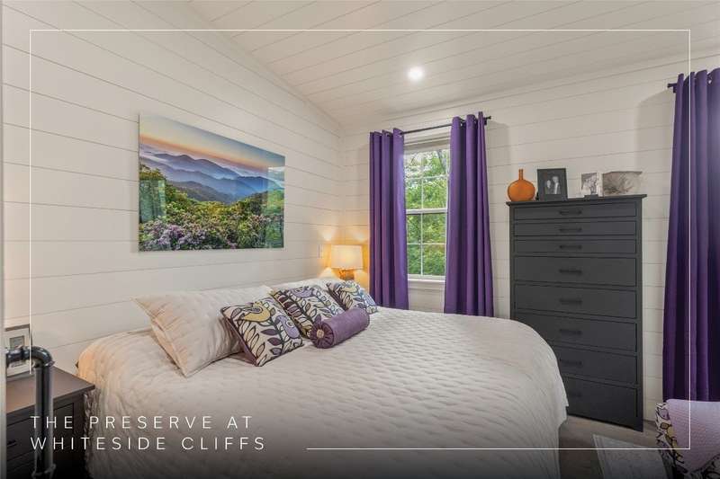 Located in The Preserve at Whiteside Cliffs between Highlands and Cashiers, this stunning retreat blends the charm of the Low Country plan with several thoughtful upgrades. It is the only home in the community to feature a custom floor plan with an expanded second bedroom on the main level, featuring a walk-in closet and direct access to the side deck. It is one of the few Low Country homes to feature a screened-in back porch. Additionally, the front door roof covering has been extended, the walk-in crawl space has been encapsulated and graded for additional clearance and storage, a charcoal water purification system was installed, and the HVAC condenser has been replaced. Interior improvements include a reconfigured laundry area with a full-size stacked washer/dryer, enhanced cabinetry, and added storage space. The home is being offered as furnished with minimal exclusions, making it an excellent turnkey option. Quality finishes such as 7-inch hardwood floors, pine shiplap walls and ceilings with cedar beams, and a designer kitchen with quartz countertops can be found throughout the home, while expansive windows frame stunning views of Whiteside Mountain.