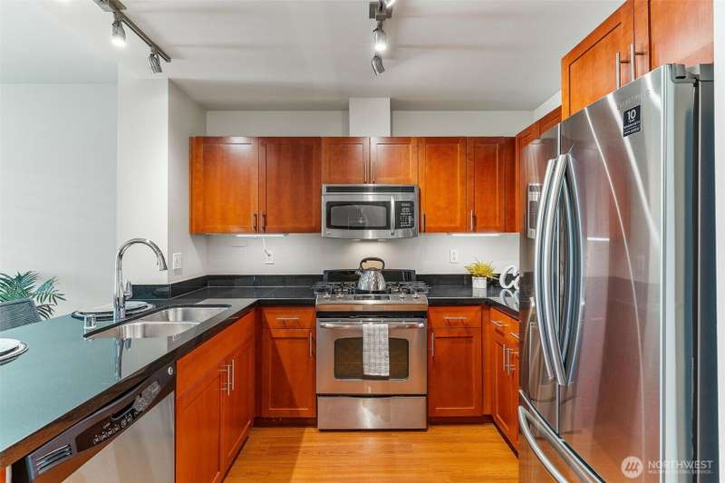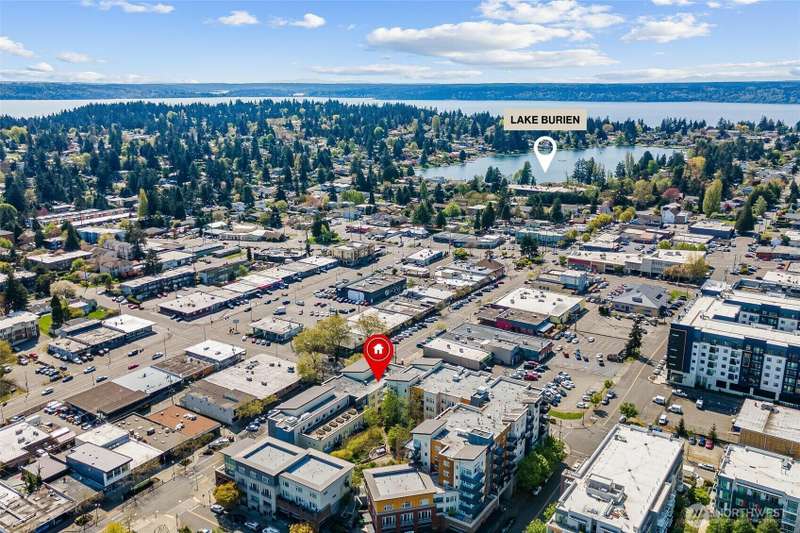 Welcome to a beautiful & affordably priced condo in a prime location in the heart of downtown Burien. Enjoy being mins from restaurants, shops, parks, the Farmer’s Market, the library, breweries, LA fitness & more. Inside, you'll love the spacious kitchen featuring quartz countertops, stainless steel appliances, & a gas cooktop—perfect for anyone who loves to cook and entertain. The bathroom also boasts a custom shower. This well-maintained community offers secure gated garage parking, a welcoming lobby, a fitness center, a lush courtyard, meeting room & a rooftop deck with a community garden and city views — perfect for relaxing or socializing. Commuters will love the unbeatable access — just 5 minutes to 518, 509, I-5, 405, & Airport.