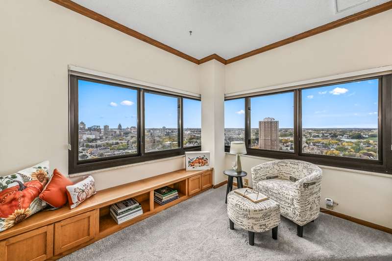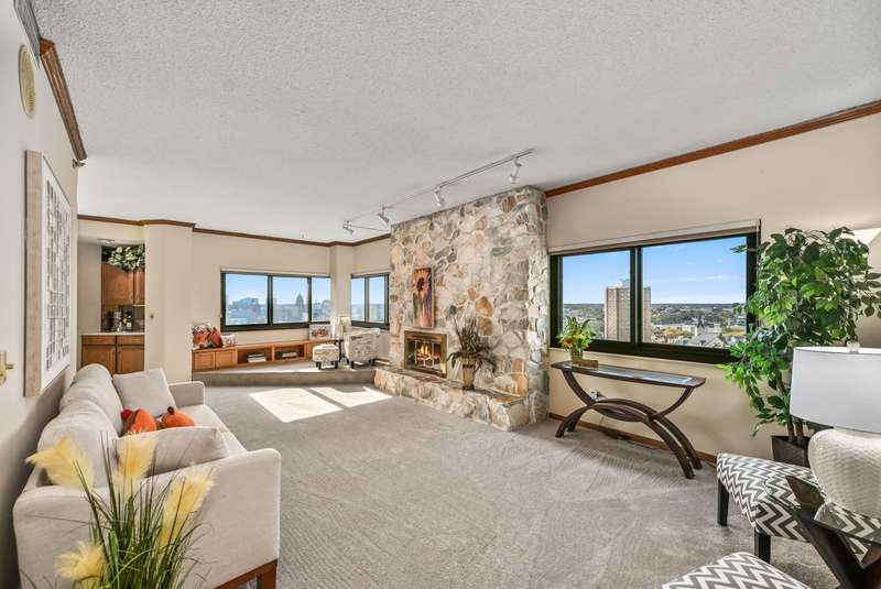 Embrace the concept of penthouse living! Panoramic views sweep the City and Lake Michigan. Read your favorite book on the raised corner of the living room. Enjoy the crackling fire on a cold winter's night. No need to join a health club, take the elevator to swim in the pool or use the fitness room. The rooftop terrace can entertain 2 or 20. Need additional space for visitors, reserve the guest suite off the lobby. 2 side by side parking spaces. Storage is on the Solarian level. Don't miss this fabulous lifestyle!