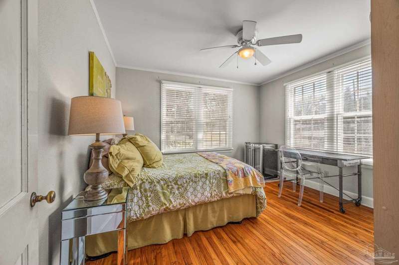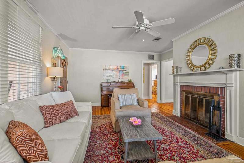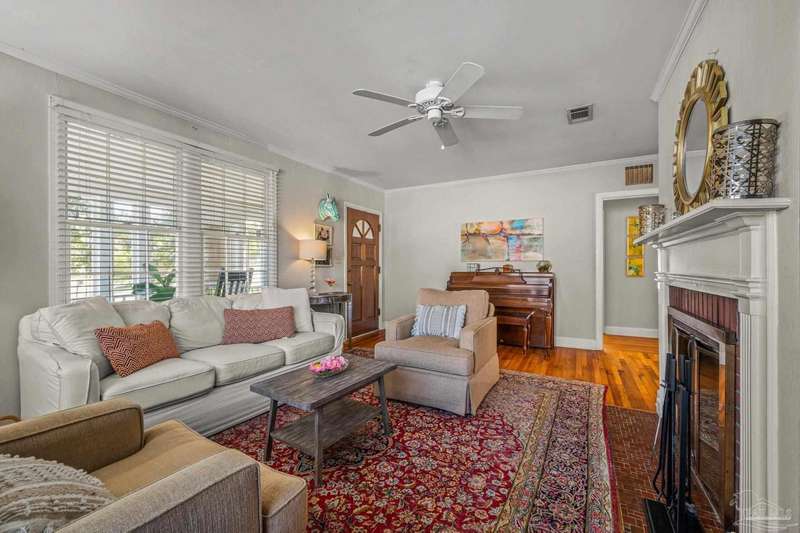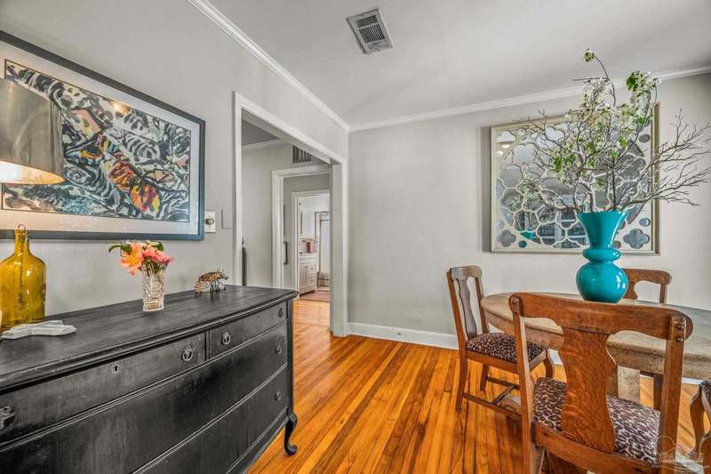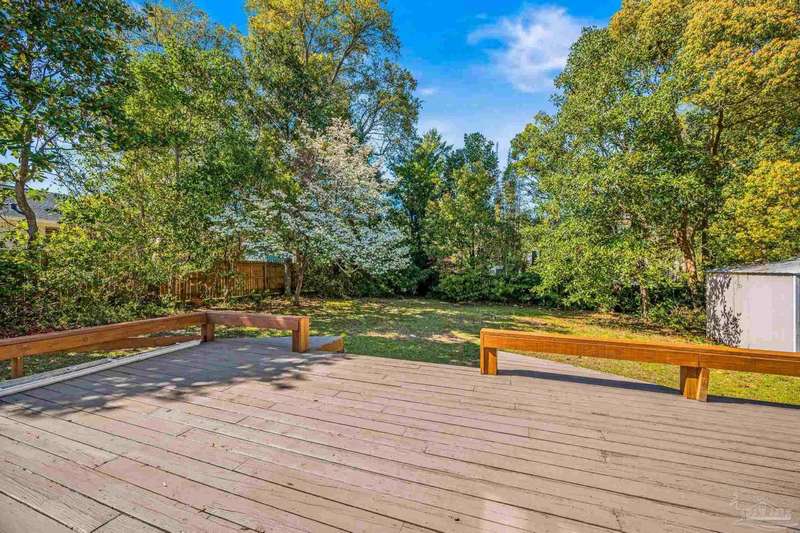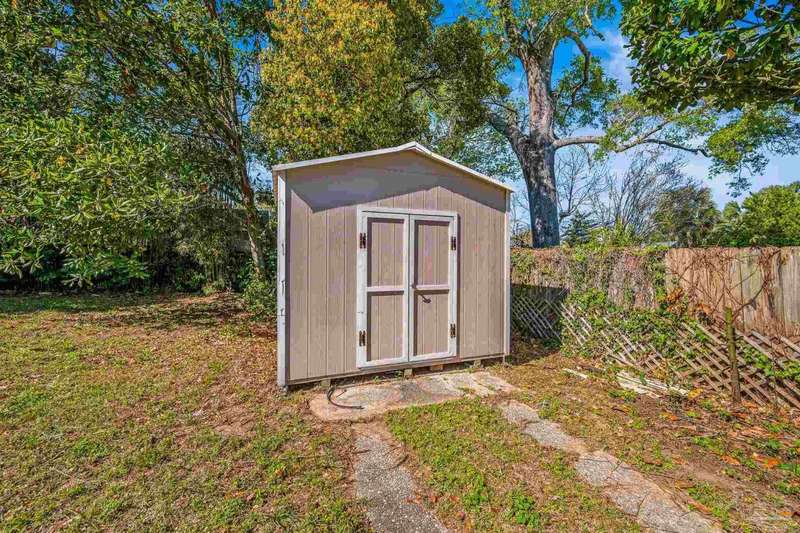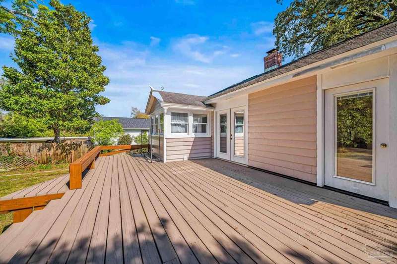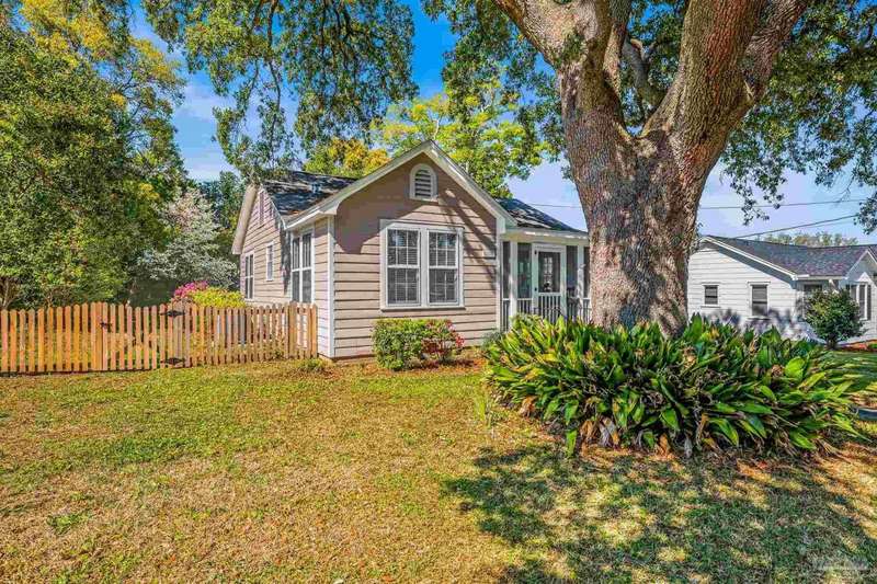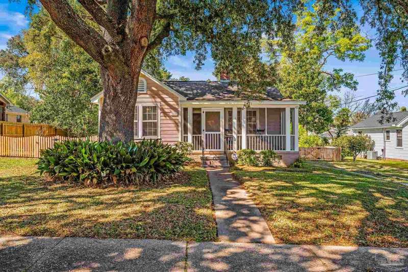 Nestled in the heart of Pensacola's sought-after East Hill neighborhood, this charming 2-bedroom, 1-bathroom cottage perfectly blends historic character with modern comforts. Just one block from scenic Bayou Texar and two blocks from Bayview Park, you'll enjoy easy access to waterfront views, parks, and outdoor recreation. Inside, original hardwood floors, abundant natural light, and a cozy layout create an inviting atmosphere. A front sleeping porch provides a perfect spot to relax and enjoy the neighborhood's peaceful ambiance. The spacious living area flows seamlessly into the well-equipped kitchen with new back splash and lighting, while the convenient inside laundry room adds to the home's practicality. Outside, the large backyard is a true retreat, featuring a spacious deck ideal for entertaining, morning coffee, or evening gatherings. A versatile outbuilding offers extra storage or workshop potential. This is quintessential East Hill and this gem has been rewired with all new electrical! Come see it today!