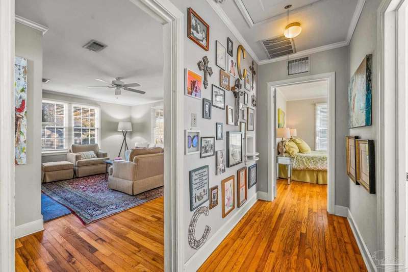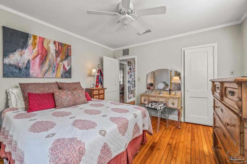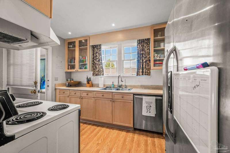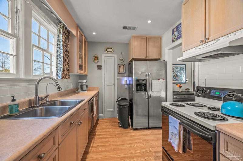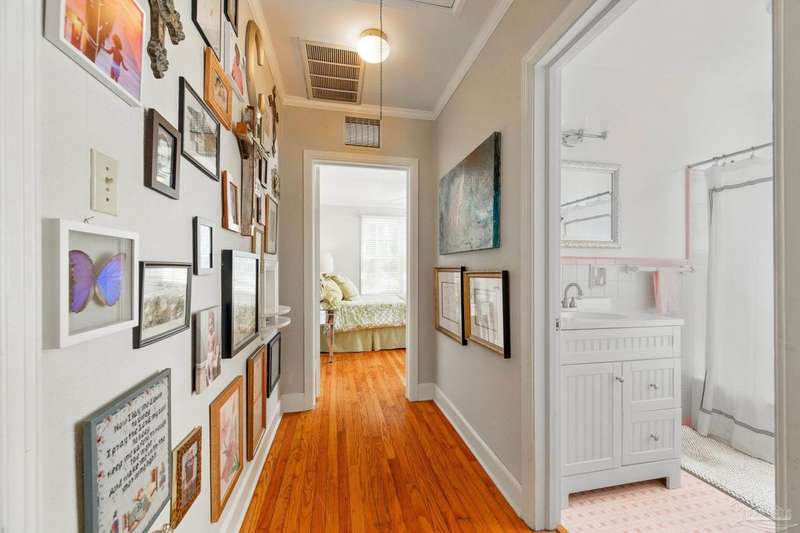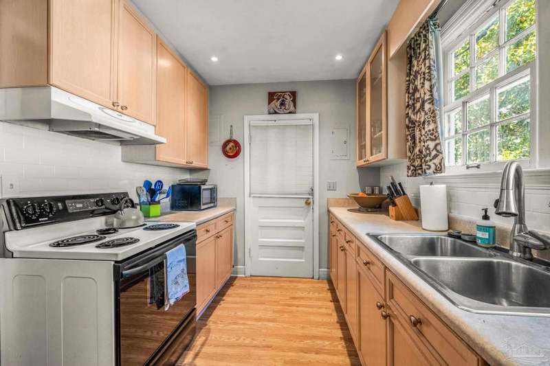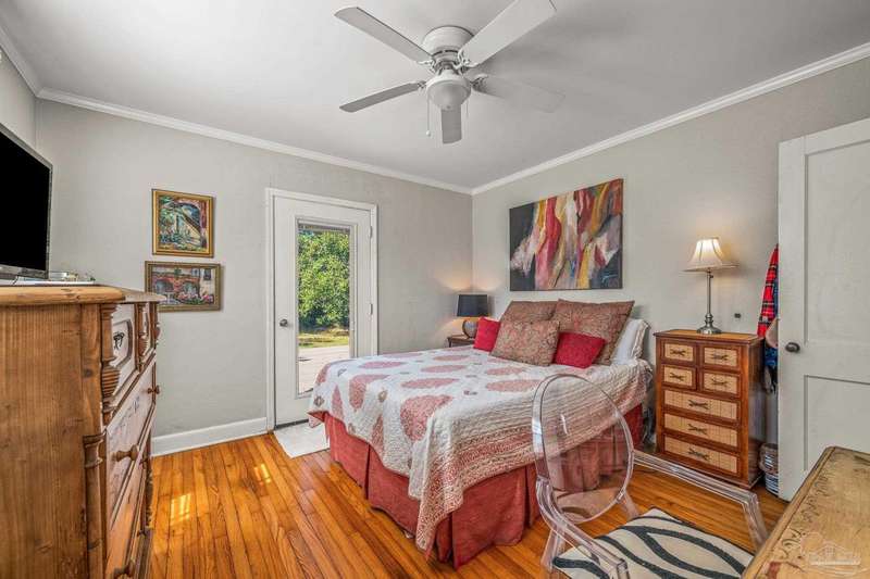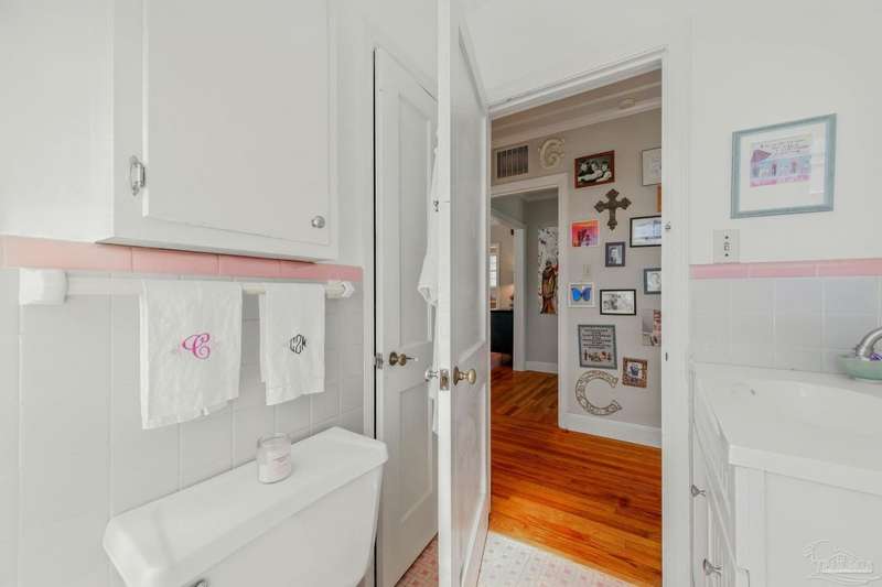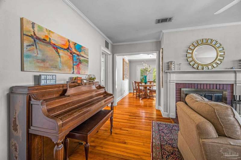 Nestled in the heart of Pensacola's sought-after East Hill neighborhood, this charming 2-bedroom, 1-bathroom cottage perfectly blends historic character with modern comforts. Just one block from scenic Bayou Texar and two blocks from Bayview Park, you'll enjoy easy access to waterfront views, parks, and outdoor recreation. Inside, original hardwood floors, abundant natural light, and a cozy layout create an inviting atmosphere. A front sleeping porch provides a perfect spot to relax and enjoy the neighborhood's peaceful ambiance. The spacious living area flows seamlessly into the well-equipped kitchen with new back splash and lighting, while the convenient inside laundry room adds to the home's practicality. Outside, the large backyard is a true retreat, featuring a spacious deck ideal for entertaining, morning coffee, or evening gatherings. A versatile outbuilding offers extra storage or workshop potential. This is quintessential East Hill and this gem has been rewired with all new electrical! Come see it today!