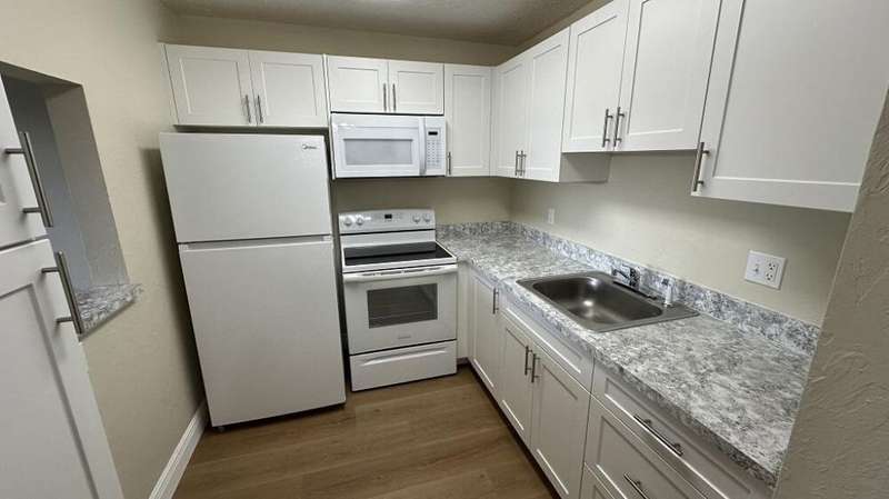 This unit was totally updated with New Wood Vynil Floors, Kitchen Cabinets, Pantry, Wall to wall Closet and Walk in Closet. All New Refrigerator, Garbage Disposal, Stove,Microwawe Oven, Air Conditioner, Ceiling Fans, Vertical blinds & freshly Painted for your enjoyment. Accordian shutters upfront and back for your hurricane protection.Credit Report required, Proof of Income, 3 Months of Pay Stubbs, Renters Insurance including personal liability.