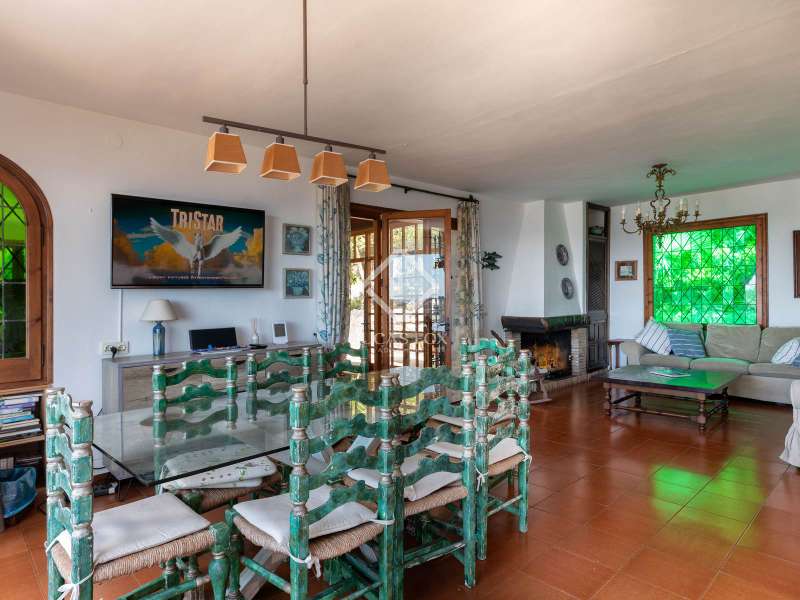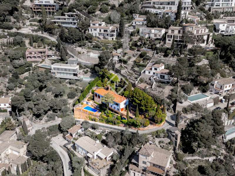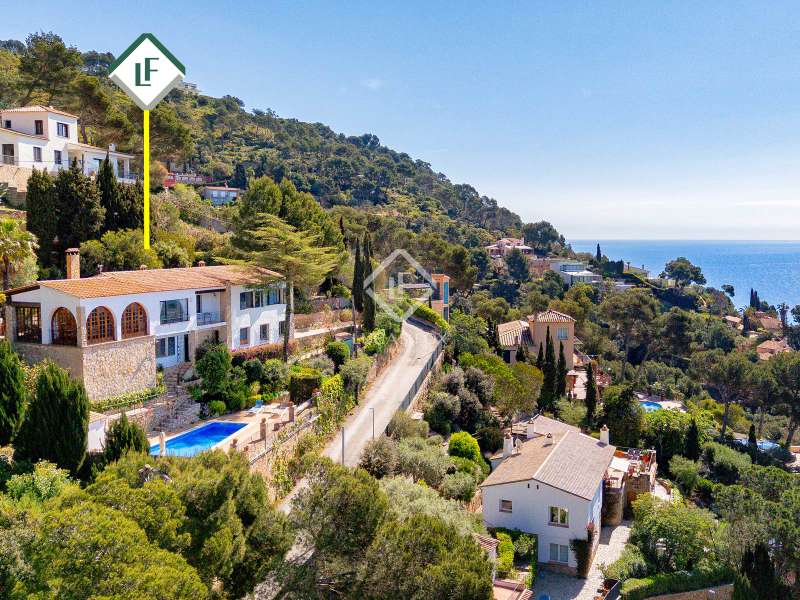 This traditional Mediterranean-style villa is located in the prestigious and sought-after Ses Costes de Aiguablava development , offering exceptional panoramic sea views across the entire bay. Facing south, it enjoys all-day sunshine and is protected from the northerly winds. The plot, with a charming Mediterranean-style garden —flowers, shrubs, and aromas typical of the Costa Brava—surrounds a magnificent heated pool and a spacious terrace, ideal for relaxing while contemplating the sea or holding outdoor gatherings. Distributed over two floors, the upper floor features a fully equipped kitchen (recently renovated), three double bedrooms, two complete bathrooms (both renovated), a large living room with a fireplace and a balcony overlooking the garden and sea, and an additional spacious living-dining room that opens onto a terrace with an exterior dining room and barbecue. On the ground floor there is a double bedroom , a single bedroom , a full bathroom , a private garage and a utility room. Built in 1971, the house retains its original character and solidity, although it could benefit from updating; the kitchen and bathrooms, however, have already been modernized. This property has a tourist license, so it can be rented during the high season, either full or partial, which adds significant profitability potential. Just a 3-minute car from Aiguablava Beach and the picturesque town of Begur, this property offers privacy, security, and high appreciation potential, making it ideal as a vacation home or investment.