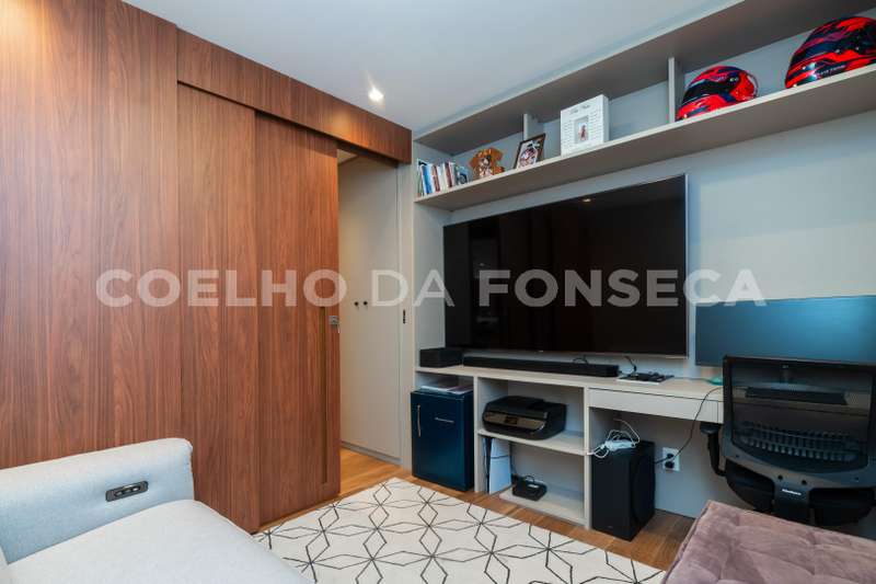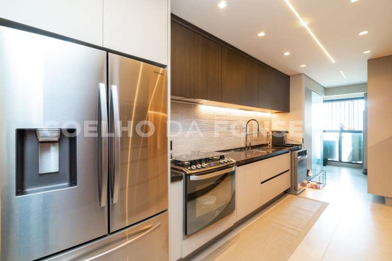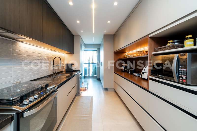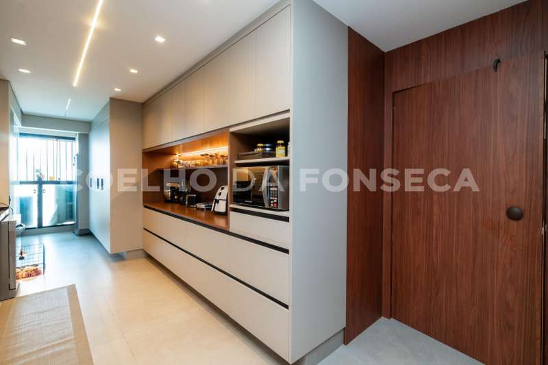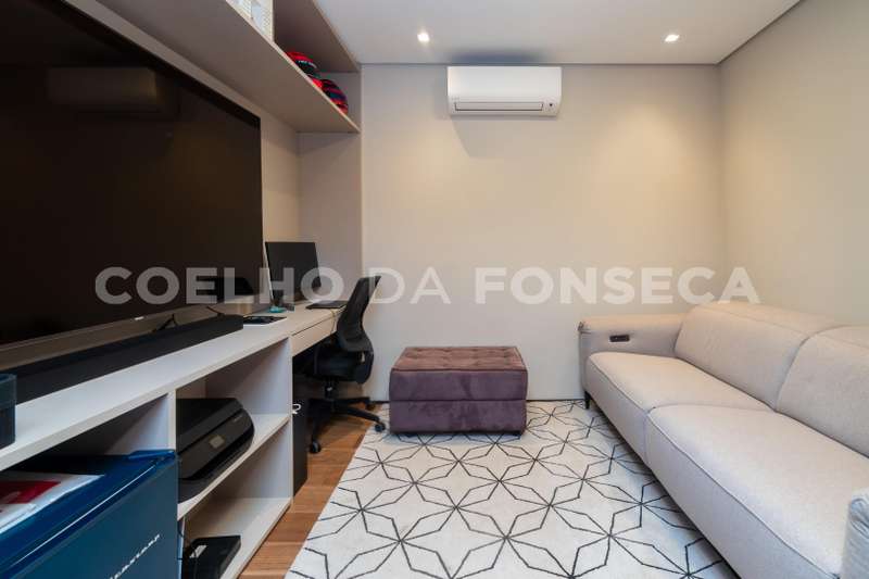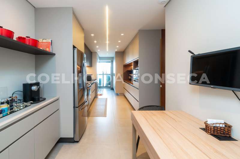Ar condicionado em todo o apartamento, incluindo cozinha e quarto da funcionária.
