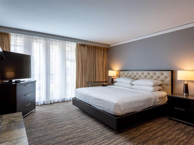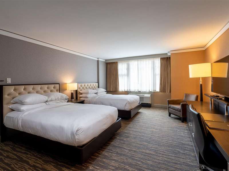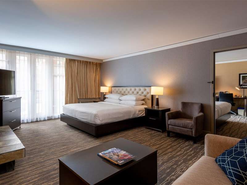 Newly renovated in 2018! Premier King bed suite with full kitchen connected to a Hilton superior room with 2 double beds. The Hilton boasts the largest fully equipped guest rooms in Whistler. It’s located in the main Village, just steps away from Whistler and Blackcomb gondolas, shops, and restaurants. Relax by the outdoor heated swimming pool, sauna, or indoor and outdoor hot tubs. Phase 1 rental zoning offers flexible owner use and good revenue potential. Add this to your list if you’re looking for a full-service luxury property in the heart of the Village!