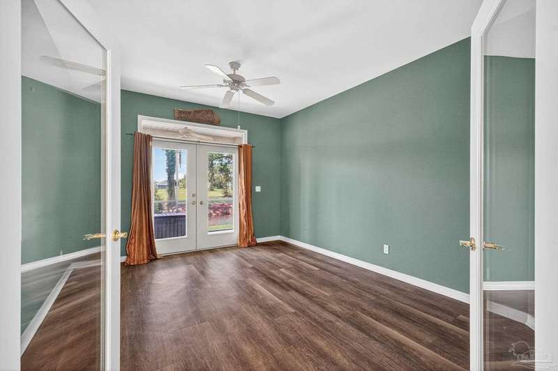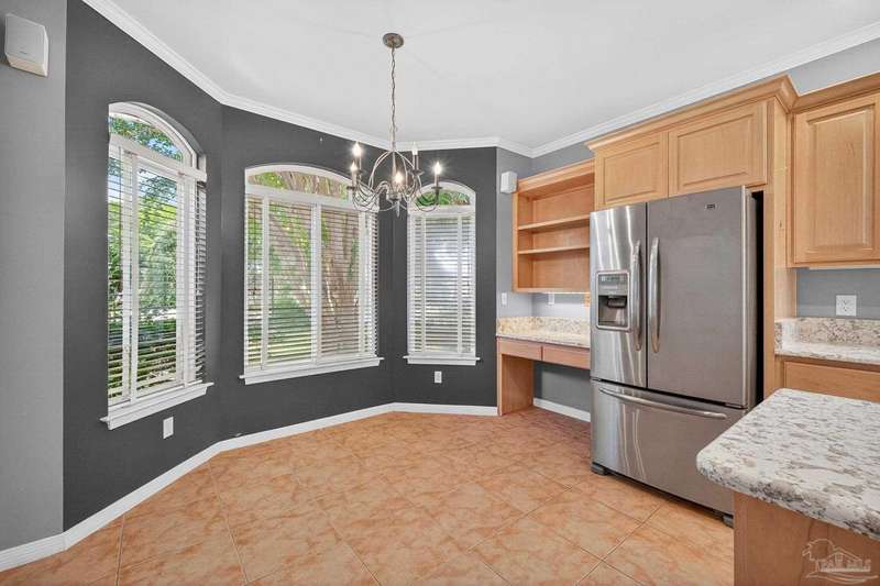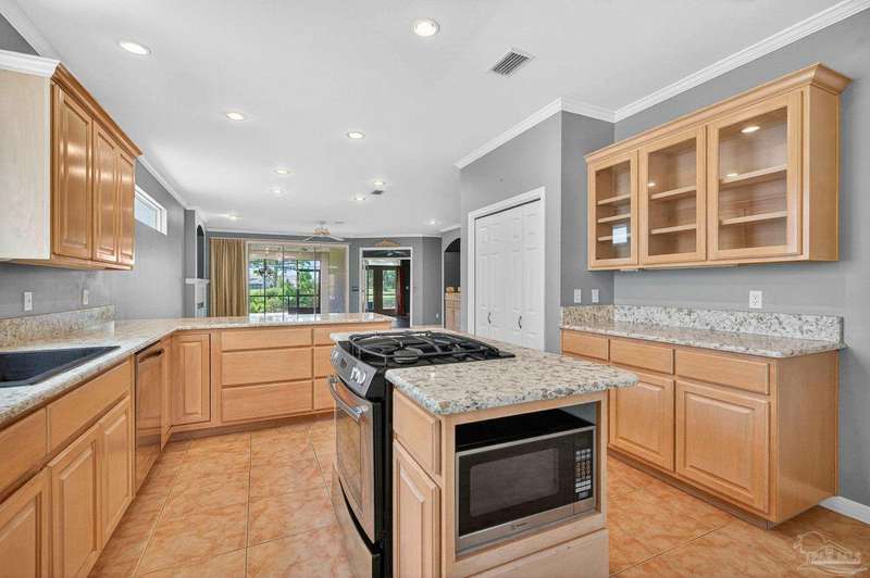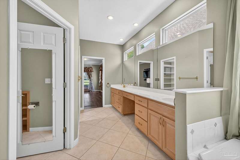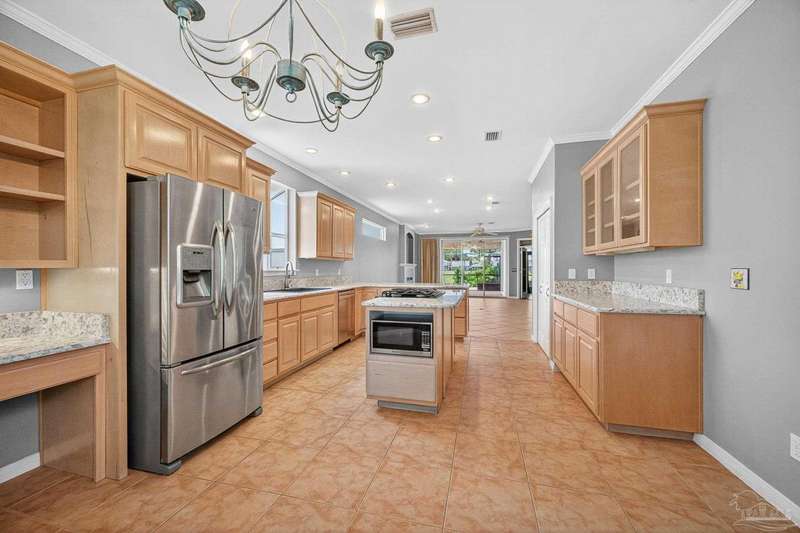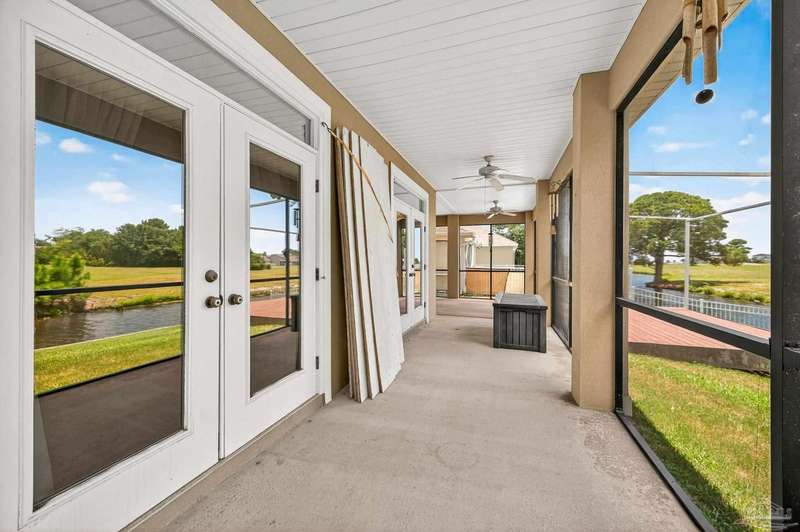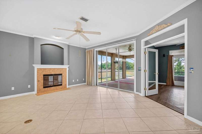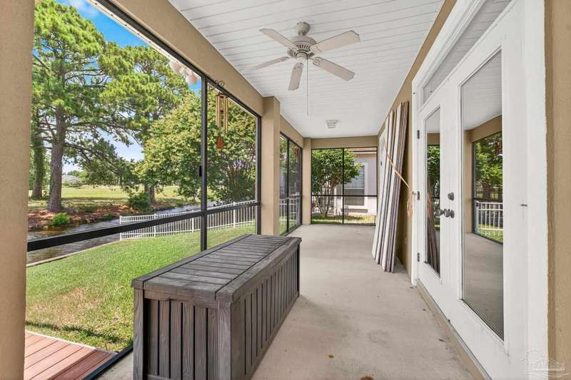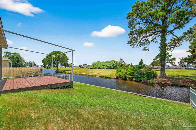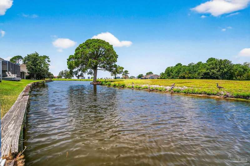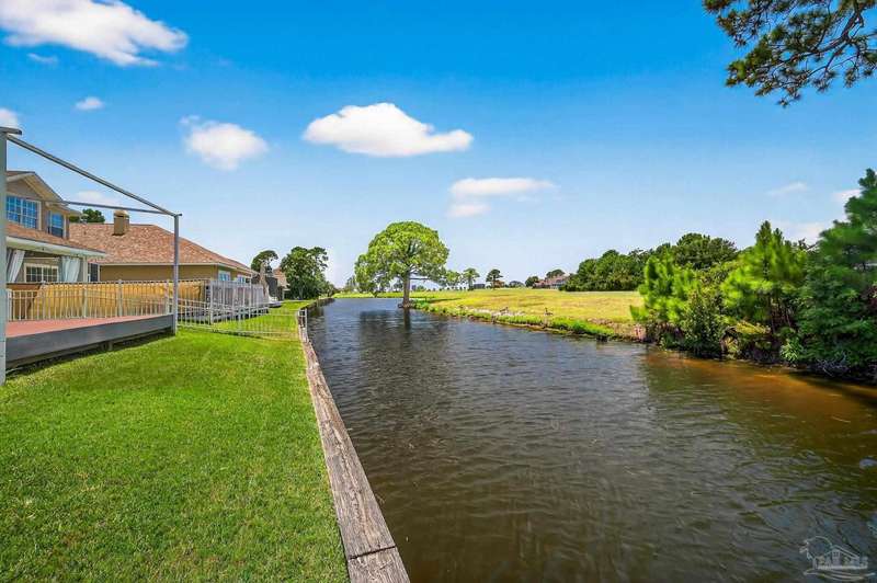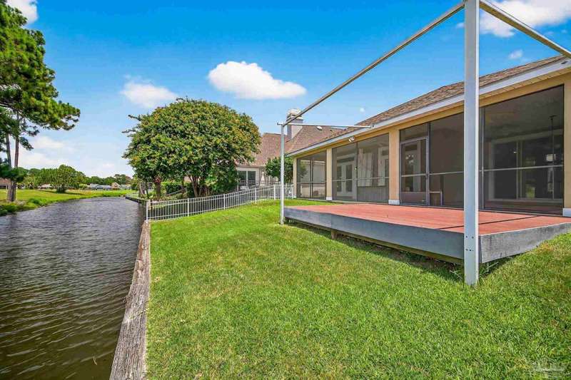 Charming Golf Course Community Home with Canal Views in Tiger Point! Welcome to this beautifully maintained 2-bedroom, 2-bath single-family home located in the quiet, desirable Willowood community of Tiger Point. Nestled in a serene golf course neighborhood, this 1,919 sq ft home offers a perfect blend of comfort, functionality, and Florida charm. The kitchen features granite countertops, a Jenn-Air gas cooktop in the island, newer appliances, a cozy breakfast nook, spacious pantry, and a built-in desk-ideal for meal prep or a work-from-home setup. Tile and luxury vinyl plank flooring flow throughout the home-no carpet to worry about! The spacious living room boasts a gas fireplace and a wet bar, perfect for entertaining. Sliding glass doors open fully to reveal a screened-in patio and deck with peaceful canal views-your own private retreat. The large primary suite includes a walk-in closet, double sink vanities, a garden tub, and a separate shower. In addition, to the bedrooms there is another room just off the living room with access to backyard that could be an office, library, multimedia room, home gym or whatever your heart desires! Additional highlights include a generous laundry room and a whole-home natural gas generator for year-round peace of mind. Enjoy easy living as the association takes care of all lawn mowing, edging & blowing. This home combines comfort and convenience in one of Gulf Breeze's most sought-after communities. Whether you're downsizing, retiring, or just looking to enjoy golf course living with water views, this home is a must-see!