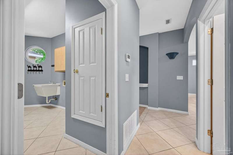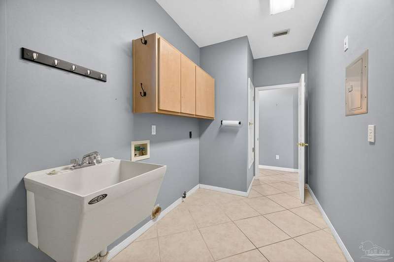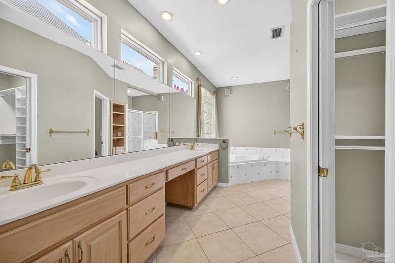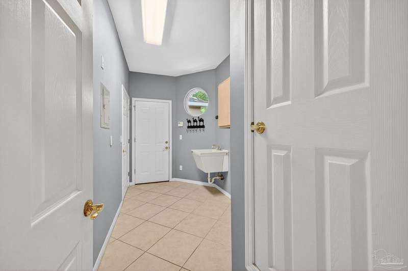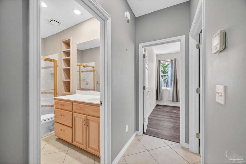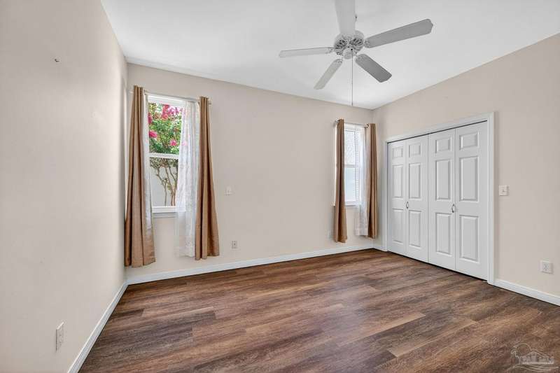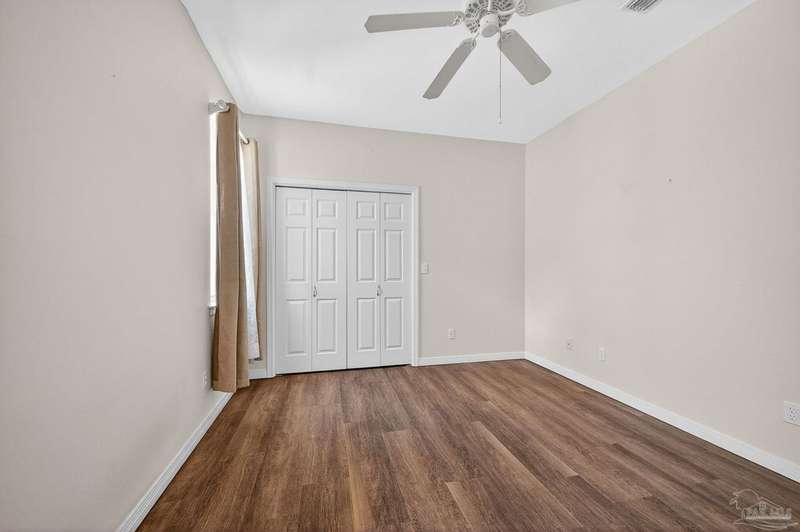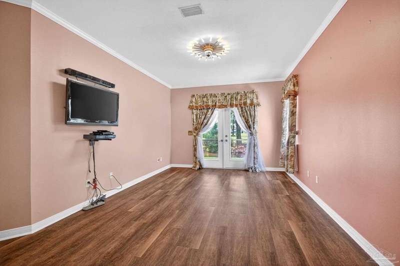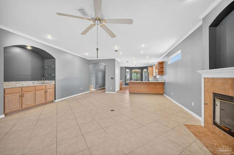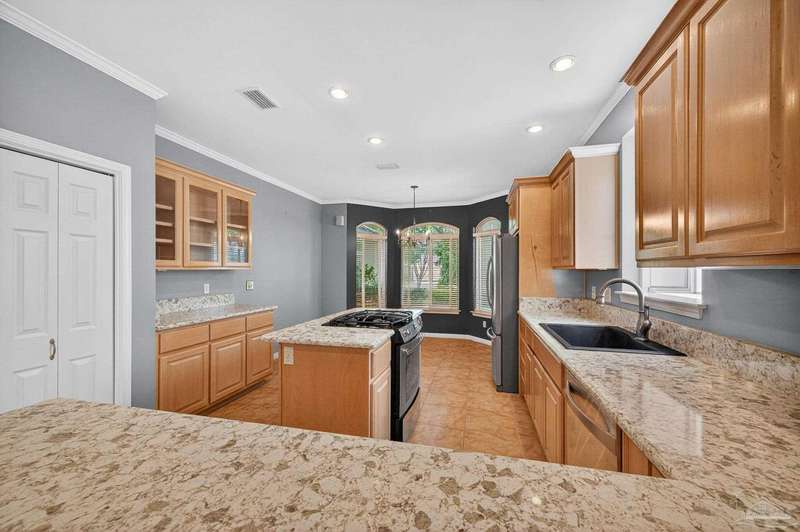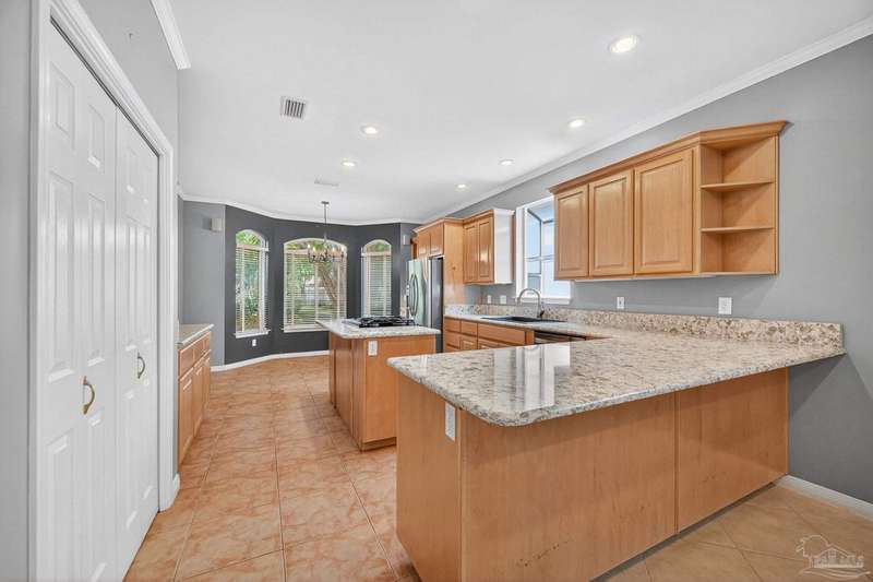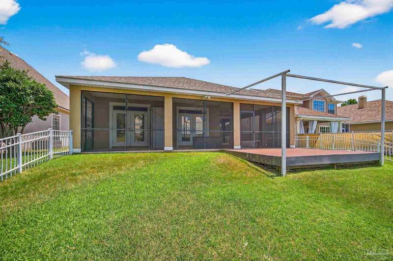 Charming Golf Course Community Home with Canal Views in Tiger Point! Welcome to this beautifully maintained 2-bedroom, 2-bath single-family home located in the quiet, desirable Willowood community of Tiger Point. Nestled in a serene golf course neighborhood, this 1,919 sq ft home offers a perfect blend of comfort, functionality, and Florida charm. The kitchen features granite countertops, a Jenn-Air gas cooktop in the island, newer appliances, a cozy breakfast nook, spacious pantry, and a built-in desk-ideal for meal prep or a work-from-home setup. Tile and luxury vinyl plank flooring flow throughout the home-no carpet to worry about! The spacious living room boasts a gas fireplace and a wet bar, perfect for entertaining. Sliding glass doors open fully to reveal a screened-in patio and deck with peaceful canal views-your own private retreat. The large primary suite includes a walk-in closet, double sink vanities, a garden tub, and a separate shower. In addition, to the bedrooms there is another room just off the living room with access to backyard that could be an office, library, multimedia room, home gym or whatever your heart desires! Additional highlights include a generous laundry room and a whole-home natural gas generator for year-round peace of mind. Enjoy easy living as the association takes care of all lawn mowing, edging & blowing. This home combines comfort and convenience in one of Gulf Breeze's most sought-after communities. Whether you're downsizing, retiring, or just looking to enjoy golf course living with water views, this home is a must-see!