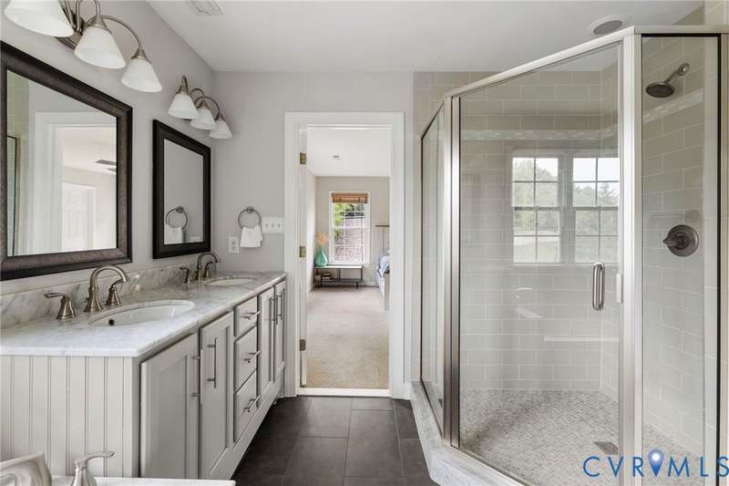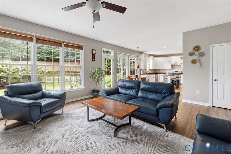 Beautifully maintained and fully renovated, this 5-bedroom, 3.5-bath home is situated on a spacious cul-de-sac lot with a fenced backyard and an oversized patio, ideal for outdoor living. A charming front porch welcomes you into a wide foyer flanked by formal living and dining rooms enhanced with custom millwork, crown molding, columns, and a tray ceiling with picture molding and chair rail. The updated eat-in kitchen boasts white cabinetry, granite countertops with island seating, tiled backsplash, recessed and under-cabinet lighting - an ideal space for gathering and cooking. The inviting family room features a gas fireplace, abundant natural light, and built-in bookcases with backlighting. Upstairs, the primary suite offers two closets and a luxurious renovated ensuite with marble countertops and a tiled shower. Three additional bedrooms share an updated bath. The third floor serves as a versatile 5th bedroom or flex space with two bonus areas and a full bath. Additional highlights include a laundry room, mudroom with built-in bench and storage, a large 2-car garage with walk-up attic storage, a newer roof (2020), and low-maintenance brick and vinyl exterior. Move-in ready with thoughtful updates throughout!