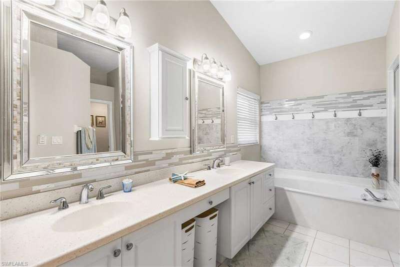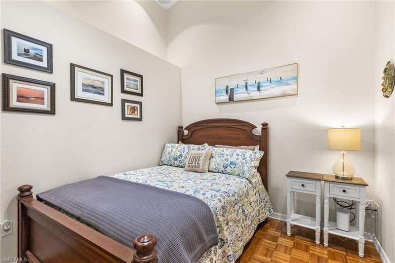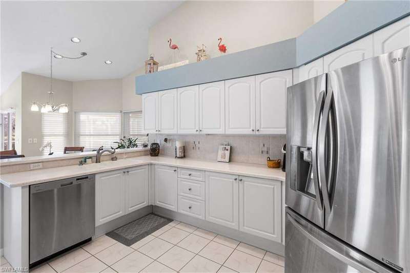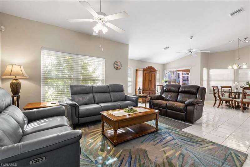 Here's your chance to finally get your dream home in the highly sought-after community of Cross Creek Estates! This METICULOUSLY-MAINTAINED home is flooded with natural light, creating an inviting space on this QUIET CUL-DE-SAC. Unwind on your PRIVATE PAVER LANAI with POOL and corner LAKE VIEW. Ideal for entertaining family and guests, this 2000+sqft home offers 3 bedrooms, DEN, 2 bathrooms, and a 2-CAR GARAGE, ensuring cozy & comfortable spaces for all. The SPACIOUS KITCHEN is light and bright with white cabinets, light Corian counters, and the STAINLESS STEEL appliances add a touch of elegance. The NEUTRAL TILE & PARQUET throughout the home, providing both convenience and style. With LAUNDRY IN RESIDENCE and a BRAND-NEW W/D, convenience is at your fingertips. You have enhanced security and peace of mind with IMPACT WINDOWS, TILE ROOF (2014), and A/C (2021). The lanai cage has recently been PAINTED & RE-SCREENED as well! The LOW HOA FEES and LOW TAXES make this home the BEST VALUE BUY in the area, ensuring that you can enjoy all the amenities without breaking the bank: clubhouse, library, pool, spa, sauna, NEWLY EXPANDED FITNESS CENTER, racquetball, tennis, pickleball, playground, dog park, and more! Fancy a round of golf? Cross Creek Country club offers PAY-TO-PLAY or GOLF MEMBERSHIPS are available for ~$1,000/year. This GATED, PET-FRIENDLY, walkable & bikeable community is perfectly positioned on Daniel's Corridor, giving you endless options for shopping, dining, and entertainment as well as quick and easy access to SWFL's finest beaches, RSW International Airport, and the Twins' & Red Sox's Spring training stadiums. Don't miss this PERFECT OPPORTUNITY to score a Cross Creek gem and begin living your dreams of sun & fun today!
