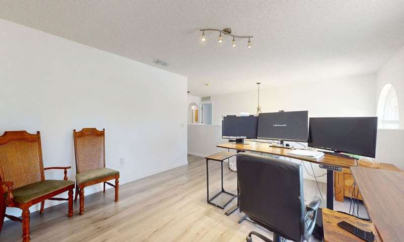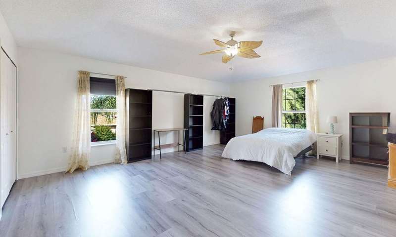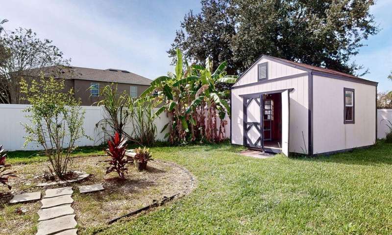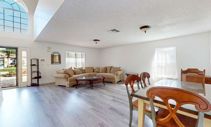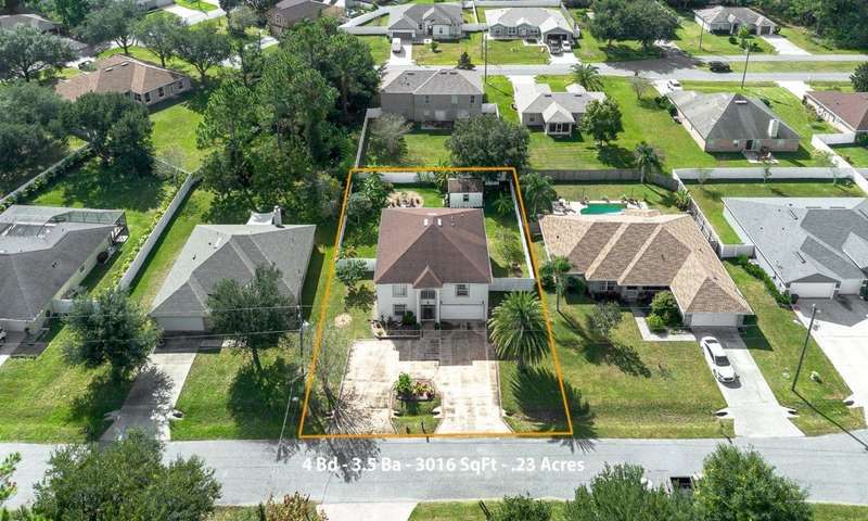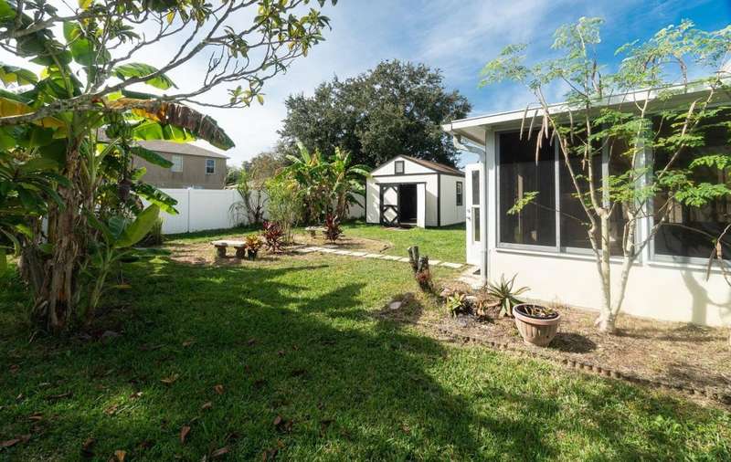 Beautiful 4 Bedroom 3.5 Bath Home In A Family-Friendly Community! Welcome to this spacious two-story home offering 4 bedrooms, 3.5 baths and over 3,000 sq. ft. of comfortable living space. Built in 2004 with solid concrete block construction, this home combines quality craftsmanship with thoughtful design. Upstairs you will find all 4 bedrooms including an impressive 18x21 master suite featuring his-and-hers walk-in closets and a luxurious master bath with a soaking tub and separate shower. Downstairs boasts a large living room and a huge 21x21 family room, perfect for gatherings and everyday living. The spacious kitchen offers stainless steel appliances, ample counter space, and room for meal prep & entertaining. A convenient half bath is located on the main floor for guests. Step outside to enjoy the oversized enclosed lanai ideal for entertaining year-round. The PVC-fenced backyard provides privacy and includes a 16x12 wooden shed - great for storing tools and outdoor equipment. Enjoy your own mini orchard with orange, banana and loquat trees right in your backyard! Additional highlights include a circular driveway for easy access and plenty of parking. Located close to top-rated schools, parks, shopping, close to area beaches, I-95 and US-1, this home offers the perfect balance of comfort, convenience and community. Dont miss your chance to make this specious home your own!